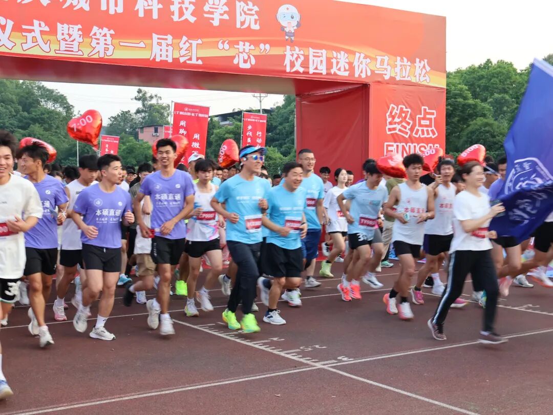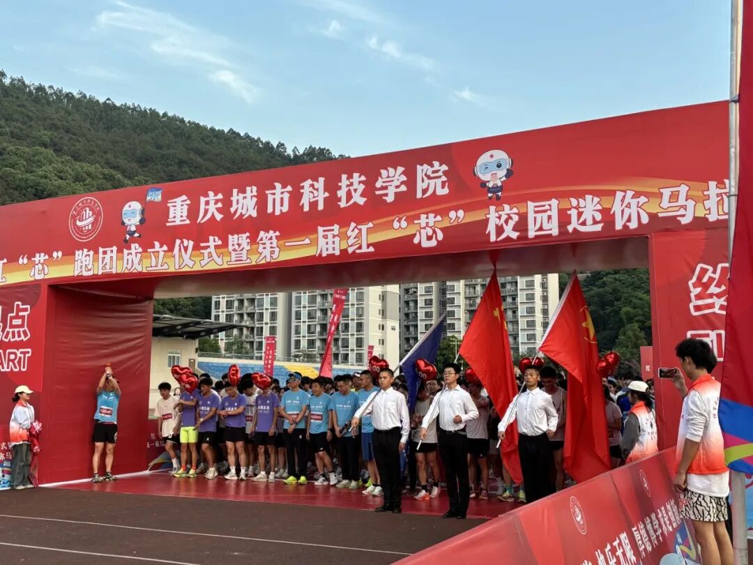 重庆城市科技学院红“芯”跑团成立仪式暨第一届红“芯”校园迷你马拉松于 2025 年 5 月 20 日在学校田径场隆重举行。此次活动意义重大,旨在传承校园红“芯”文化,增强师生红色文化意识,积极响应“体育强国、健康中国”号召,以体育为载体,厚植爱国情怀,培养全面发展的新时代青年。