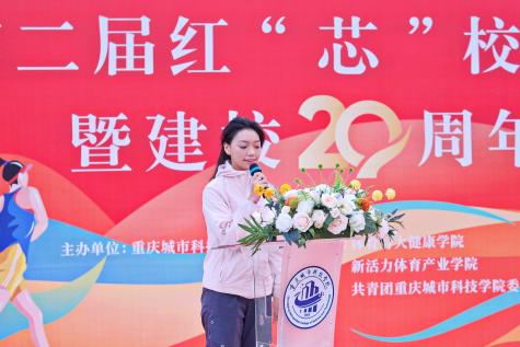 重庆城市科技学院校长黄宗明为活动致开幕词。他指出,“红芯” 象征城科人赤诚初心与坚定信念,本次迷你马拉松既是学校体育教育成果的展示,也是健康第一教育理念与“以文化人、以体育人”的生动体现。他回顾学校二十年发展历程,强调体育对强健体魄、锤炼意志的育人作用,同时鼓励师生将奔跑中的坚持转化为成长动力,为学校高质量发展贡献力量。