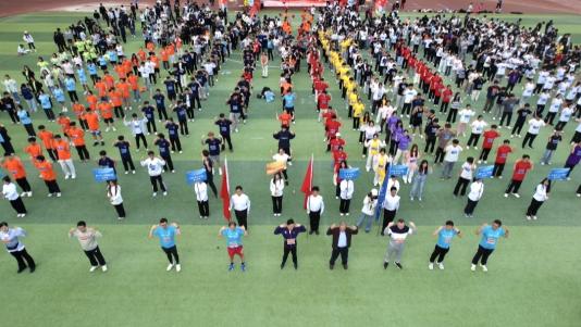 在主持人的引导下,全体参赛选手有序散开在足球场上,跟随体育与大健康学院侯佳伶老师进行赛前热身操,大家动作整齐、神情专注。随后,全体师生肃立齐唱国歌,激昂歌声凝聚奋进力量,为赛事增添了庄严而热烈的氛围。
