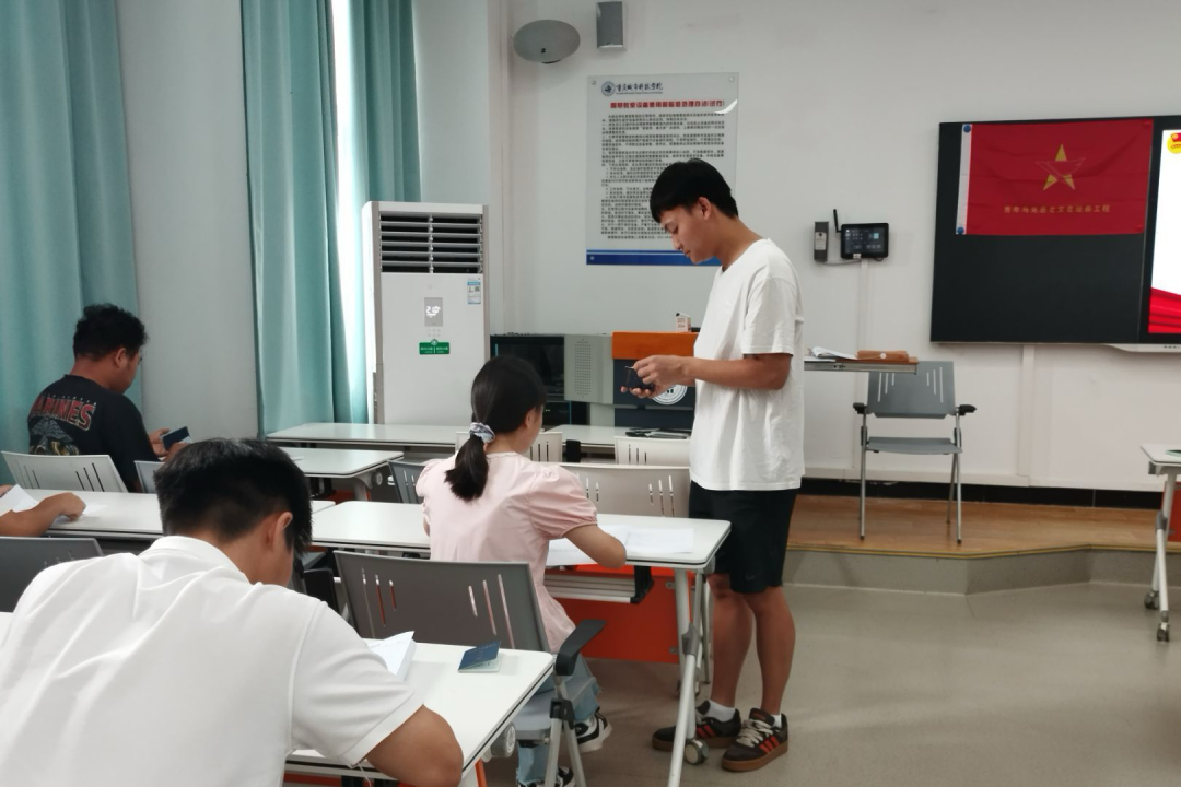 为深入贯彻落实习近平新时代中国特色社会主义思想和习近平总书记关于青年工作的重要思想,持续推进青年马克思主义者培养工程,强化青年骨干培育,提升“青马工程”学员的理论素养与综合能力,2025年6月3日中午,体育与大健康学院于主教310开展了第三期“青马工程”培训班理论考试。第三期“青马工程”学员参与此次考试,体育与大健康学院团总支书记王胜蓝监考。