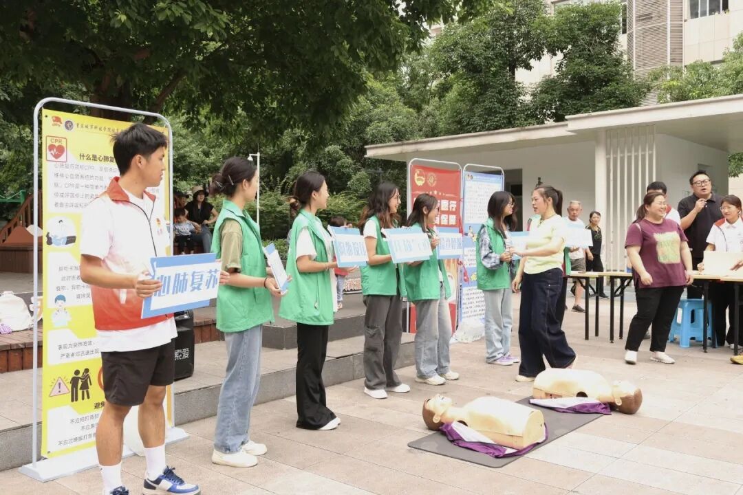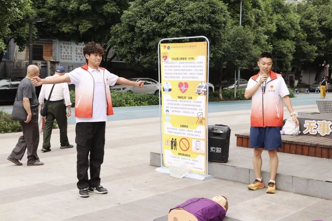为深入贯彻落实《“健康中国2030”规划纲要》,提升全民自救互救能力,2025年5月30日,体育与大健康学院联合建筑管理学院走进永川区萱花路社区,开展“萤火之光”系列活动之“急救培训进社区,安全守护零距离”志愿服务活动,本次活动由体育与大健康学院团总支书记王胜蓝、建筑管理学院团总支书记孙玉素带队,依托“健康筛查+技能实训”双轨服务模式,提升居民自救互救能力。