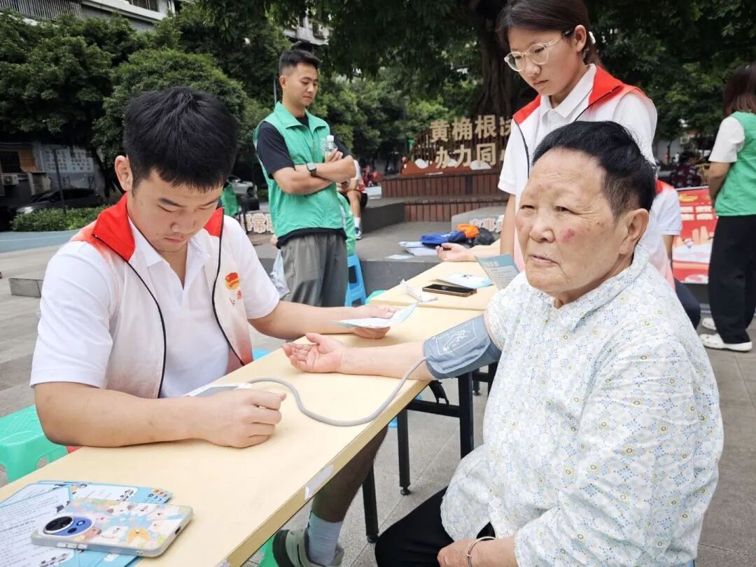 活动现场,血压测量与健康宣传站点志愿者们为居民提供血压测量服务,逐一记录数据,并根据居民身体状况,细致讲解 “三高” 预防知识与饮食建议。同时,他们向居民发放精心设计的宣传单页,将健康生活指南与实用急救知识相结合,助力居民树立急救意识。