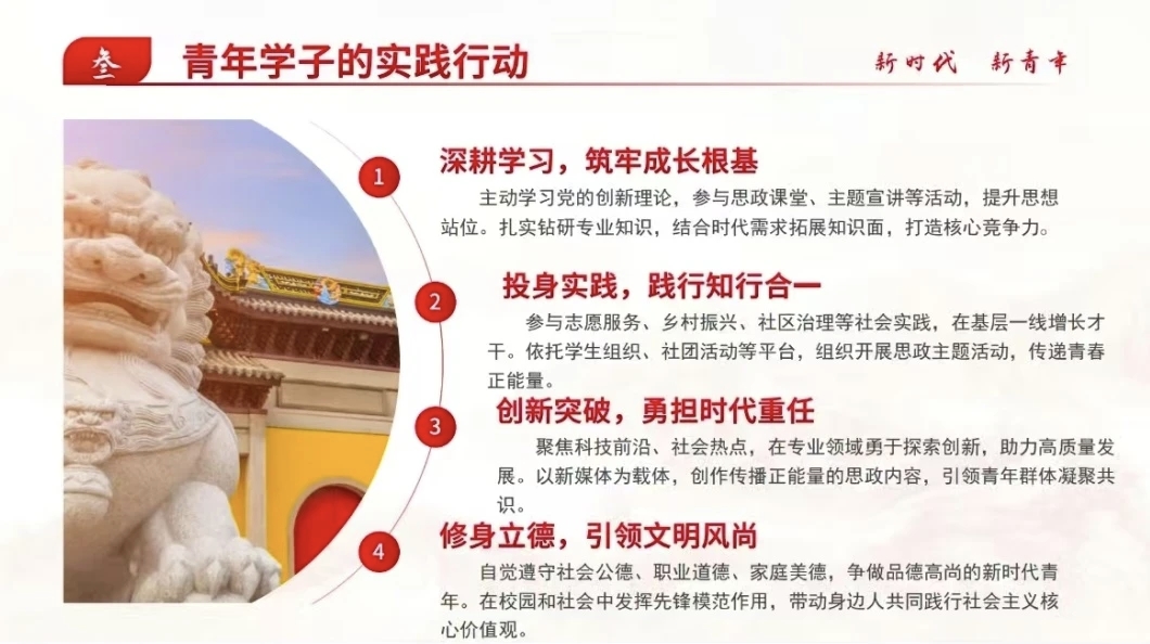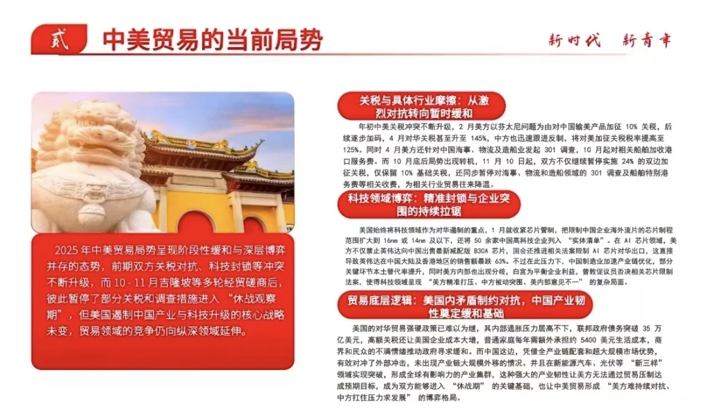 活动还聚焦了中美贸易等国际局势,强调思政教育在复杂国际环境中的引领作用。苟朝鑫引导同学们要铸魂立心、传承薪火,将爱国情、强国志、报国行自觉融入成长全过程,并通过深耕学习、创新实践、修身立德来练就过硬本领,勇担时代重任。