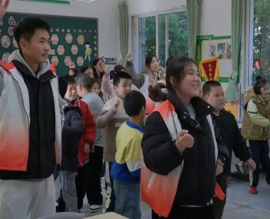 活动伊始,以“欢乐律动操”拉开活动序幕,志愿者们带领孩子们舒展肢体,从简单的抬手、摆臂到模仿小动物动作,在轻松的律动中,孩子们逐渐放下拘谨,与志愿者牵手互动,欢笑声洒满教室。