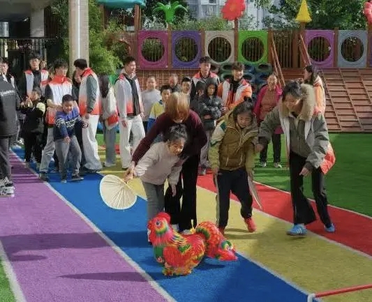 破冰活动后,活动进入互动体验环节,一场趣味十足的“赶鸡入笼”小游戏点燃现场氛围。志愿者与孩子们一对一协作,手持道具小心翼翼地引导“小鸡”向指定“笼子”移动,过程中既有默契配合的顺畅推进,也有意外跑偏的欢乐插曲。孩子们在一次次尝试中逐渐找到技巧,脸上洋溢着专注与喜悦,不仅锻炼了手部精细动作、肢体协调能力与简单指令执行力,更在温和的互动中收获了自信心与参与感,为活动注入了温暖而治愈的力量。