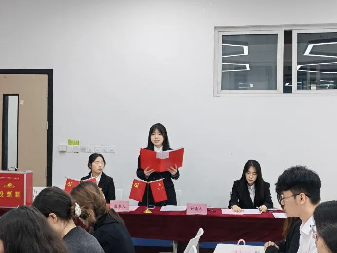 为进一步加强党组织建设、充分发挥党支部战斗堡垒作用,为支部注入新的活力,中共重庆城市科技学院体育与大健康学院学生第一支部委员会换届选举大会于2025年11月7日中午在主教201隆重召开,由学生第一党支部副书记钟娟娟主持。支部40名党员同志参会,本次大会严格按照《中国共产党章程》《中国共产党基层组织选举工作条例》等有关规定和学校党委相关指导意见进行,圆满完成各项议程,成功选举产生新一届支部委员会委员。