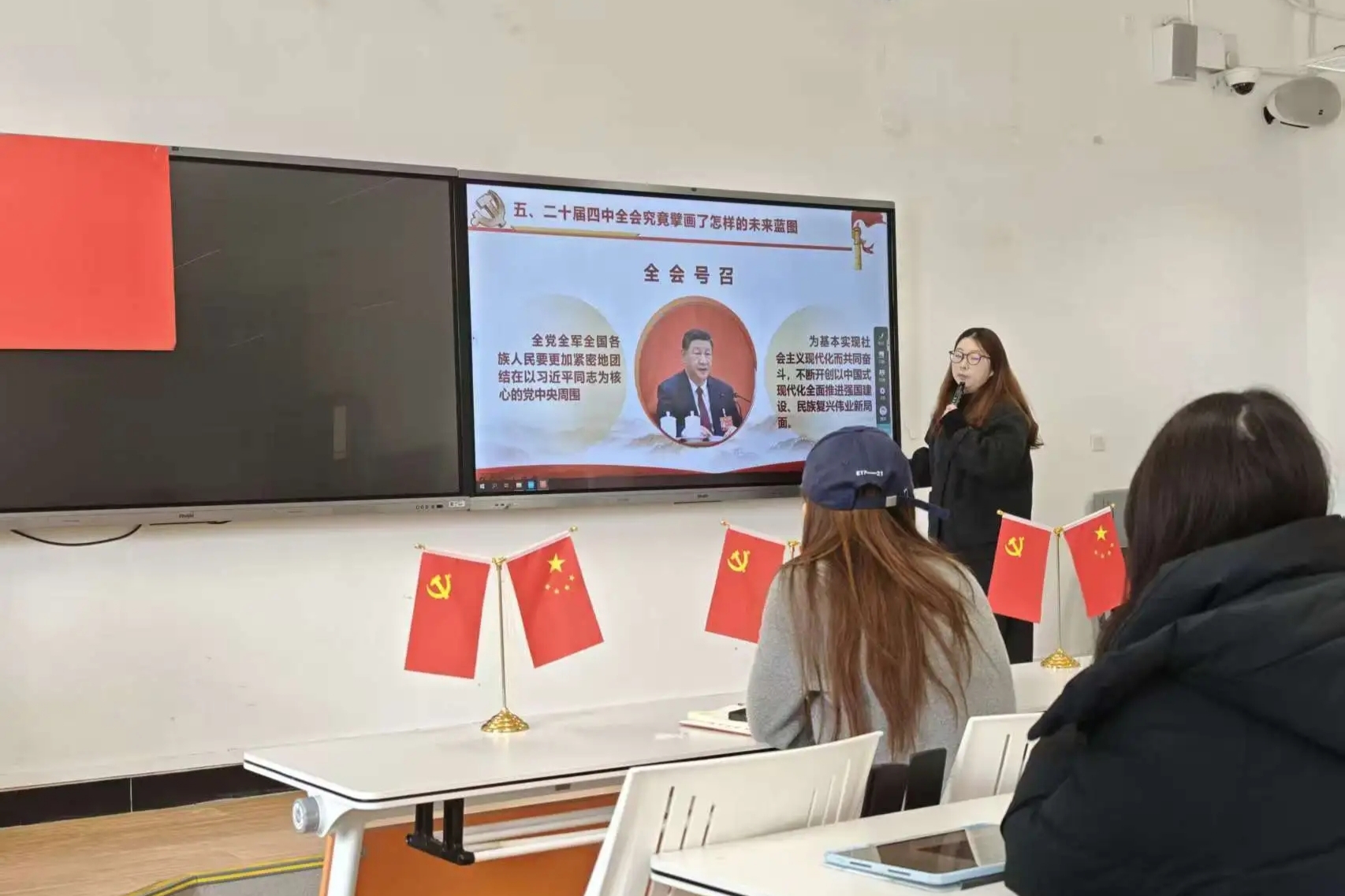为深入学习贯彻党的二十届四中全会精神,引导青年党员将思想和行动统一到党中央决策部署上来,2025年11月19日,中共重庆城市科技学院体育与大健康学院学生第一支部委员会在主教206召开“深学笃行党的二十届四中全会精神,勇担‘十五五’现代化新使命”主题党课。本次党课由体育与大健康学院学生第一党支部书记钟娟娟同志主讲,支部全体党员、星火一班全体入党积极分子参会。