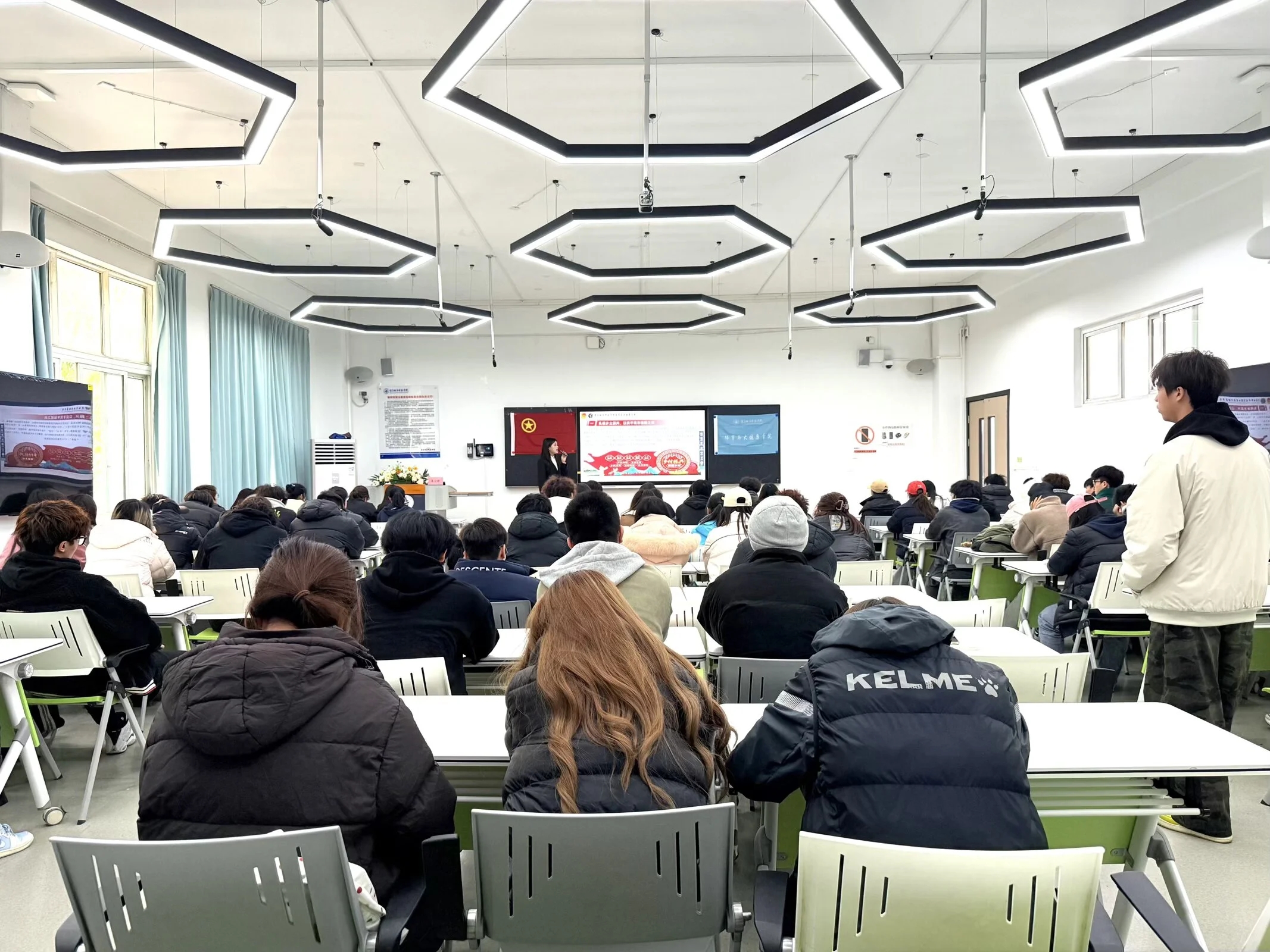 主讲人娄玉婷首先围绕“以文铸魂”展开阐述。她深刻解读了“九州魂”所蕴含的家国担当与奉献精神,指出典籍、故事与誓言是民族精神的传承密码,并引导同学们思考在中国式现代化新征程中,青年应如何自觉传承中华优秀传统文化、革命文化与社会主义先进文化,筑牢强国建设的精神根基。