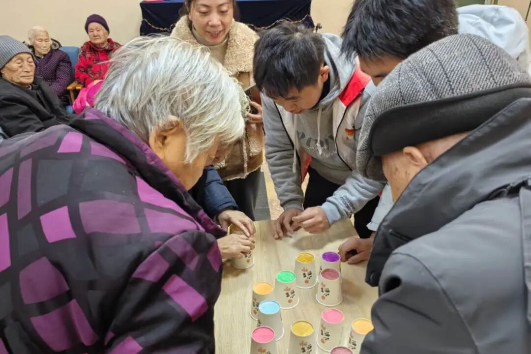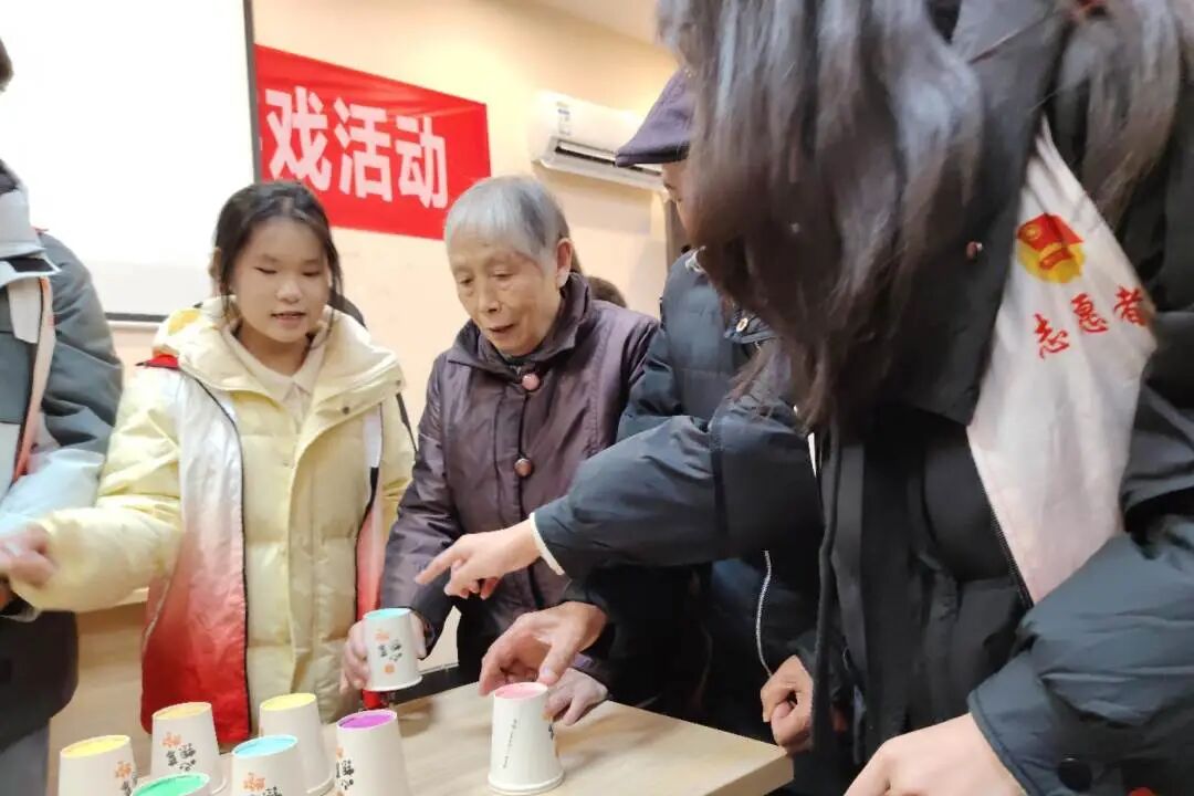 “彩数寻友杯”游戏聚焦老年人认知能力提升,志愿者提前在纸杯上标注不同颜色与数字,引导老人们识别相同标识并完成纸杯配对。活动过程中,老人们认真比对、互帮互助、交流技巧,在轻松愉悦的玩乐氛围中锻炼手眼协调能力与颜色、数字认知能力,有效激活思维活力、涵养健康心态,为预防老年认知衰退起到积极作用,现场欢声笑语不断,温情满满。