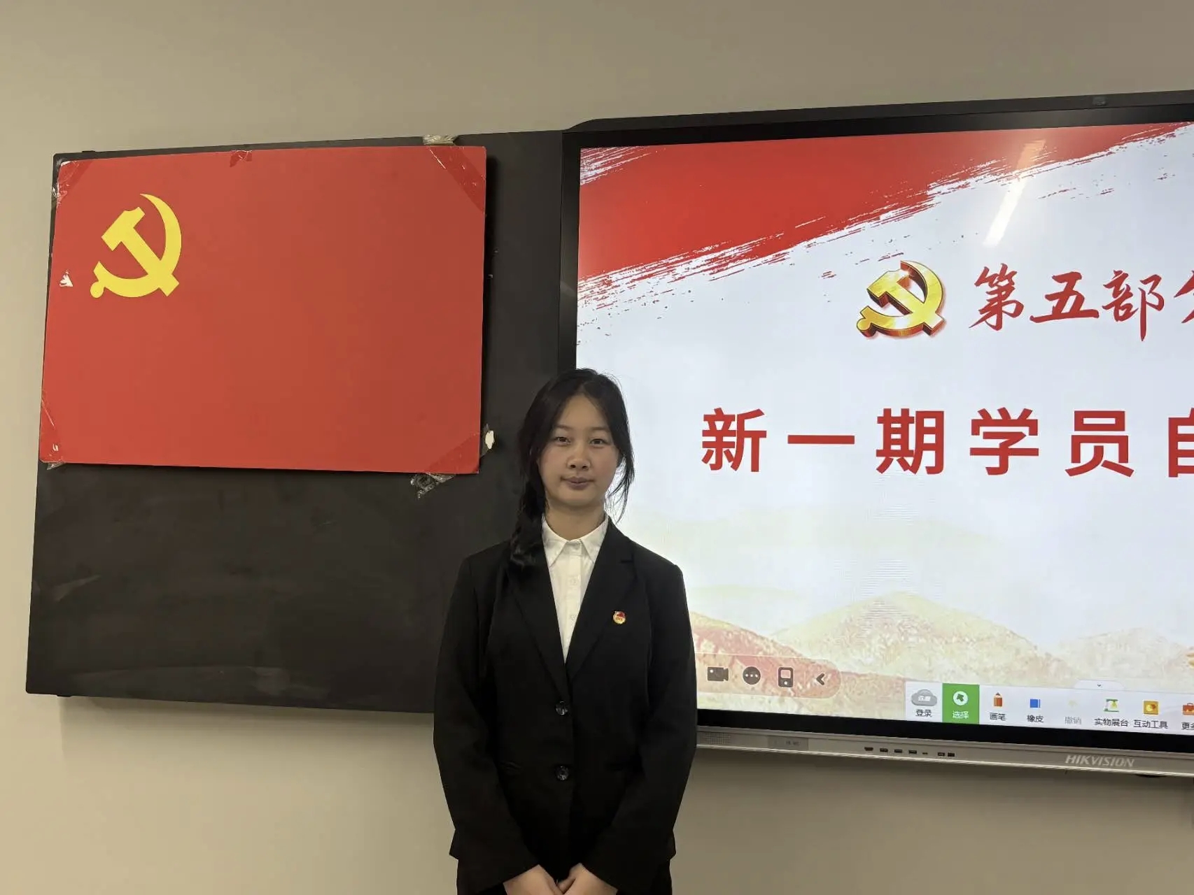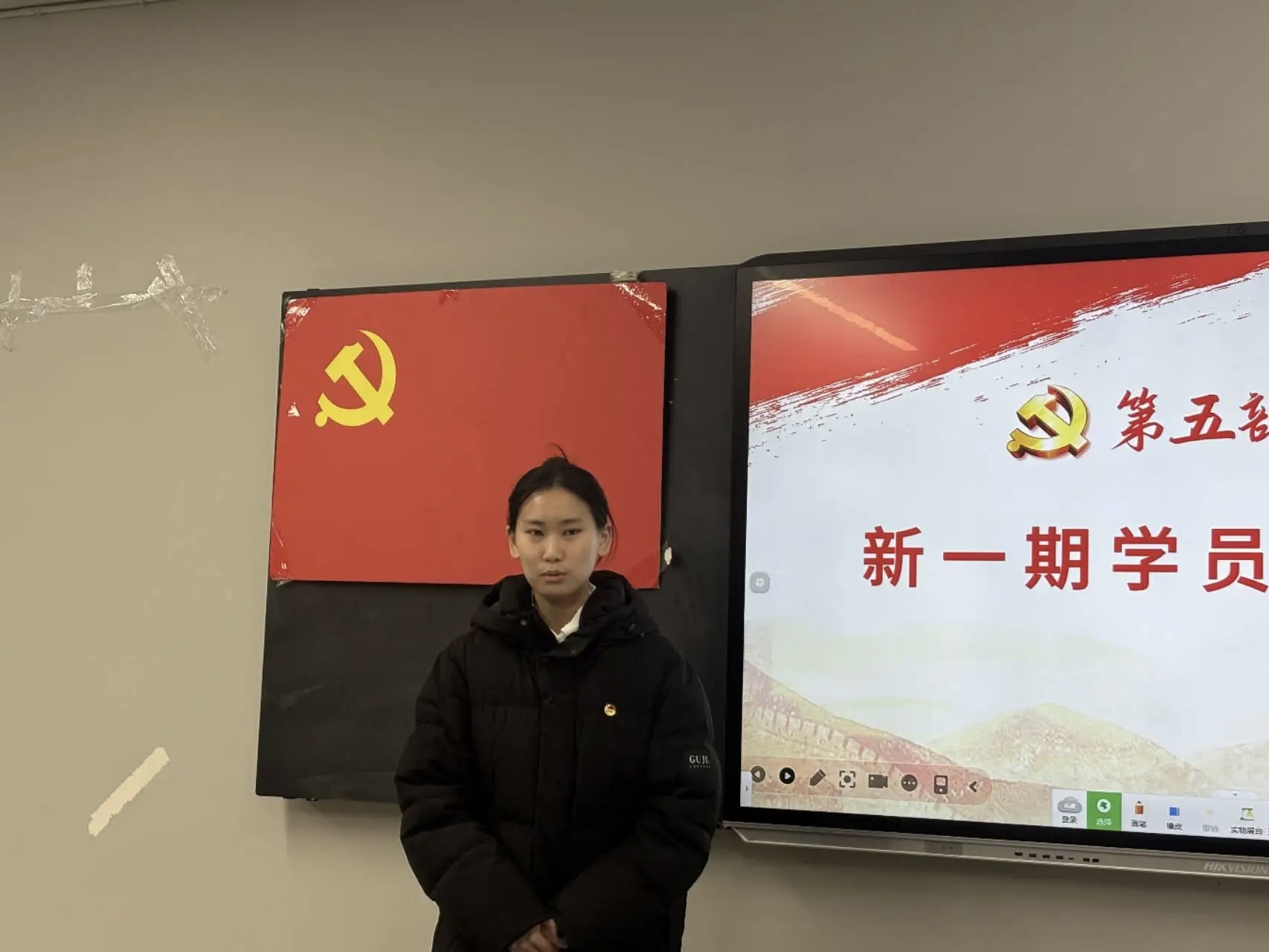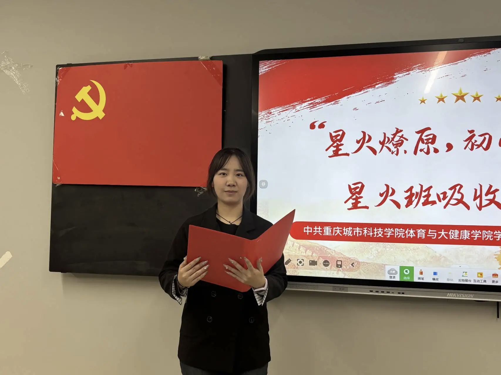 致辞结束后,本期入党积极分子代表吴谨含同学上台发言,她说加入到星火班深感荣幸,并郑重表示将以此作为个人成长的新起点,持续深化理论武装,不断提升综合素养,以扎实的学习态度和切实的实际行动,向党组织靠拢,争取早日成为一名光荣的中国共产党党员。