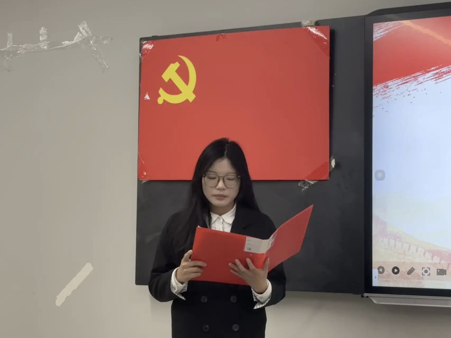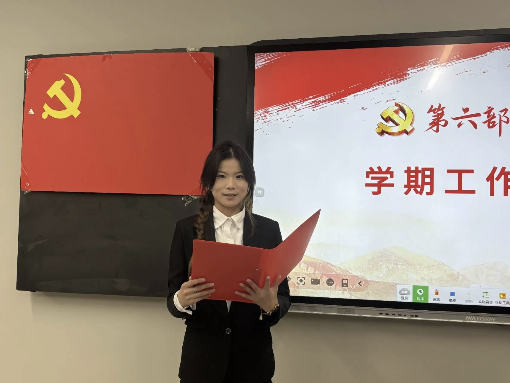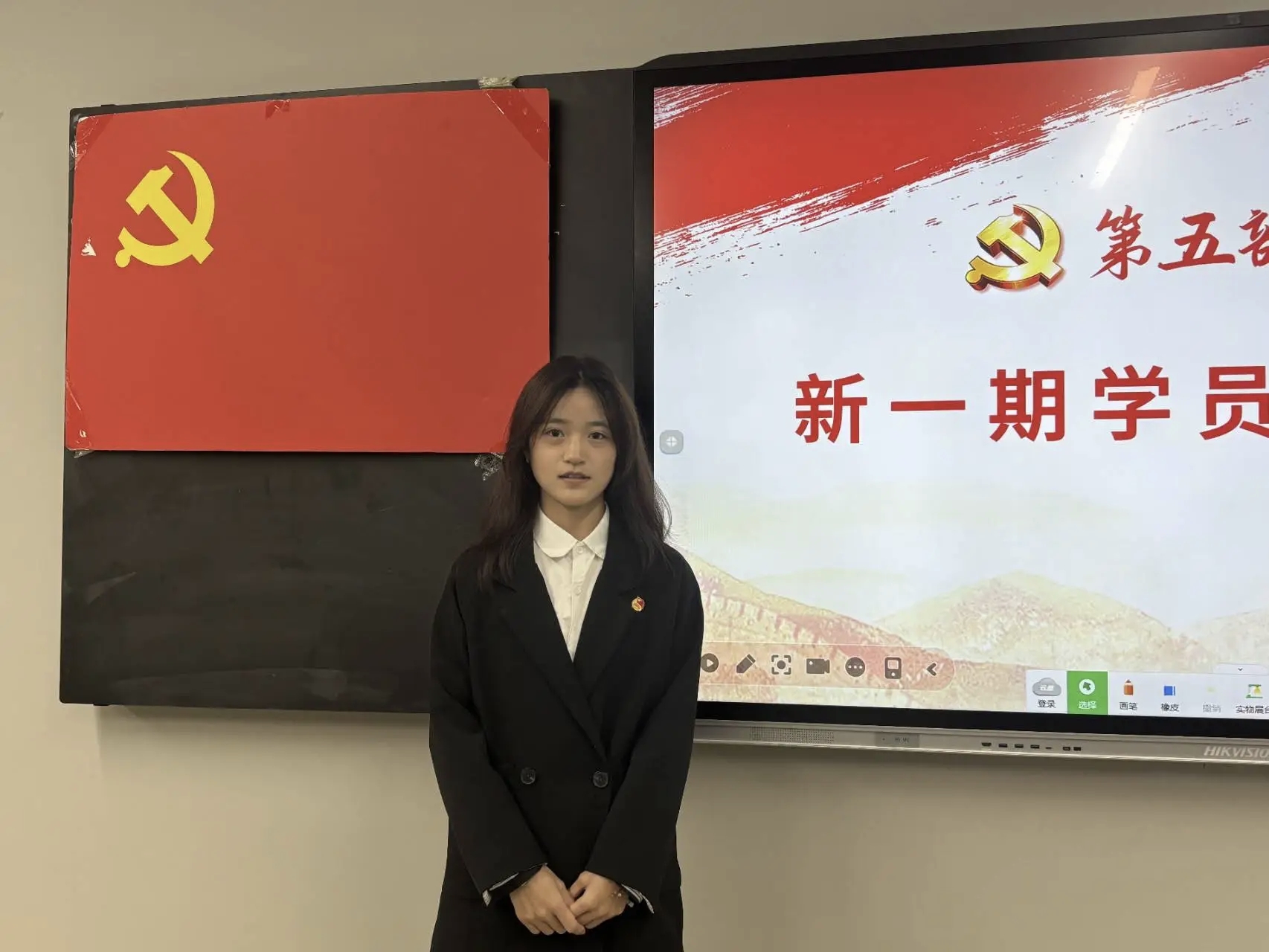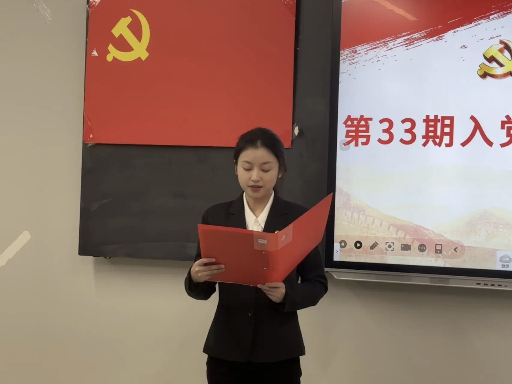 致辞结束后,本期入党积极分子代表吴谨含同学上台发言,她说加入到星火班深感荣幸,并郑重表示将以此作为个人成长的新起点,持续深化理论武装,不断提升综合素养,以扎实的学习态度和切实的实际行动,向党组织靠拢,争取早日成为一名光荣的中国共产党党员。