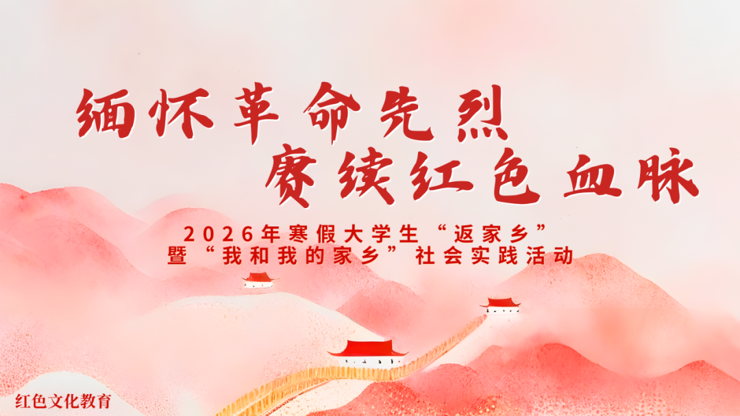 为深入学习宣传贯彻习近平新时代中国特色社会主义思想,全面贯彻落实党的二十大和二十届四中全会精神,践行《关于在新时代新征程高校思政课建设中进一步发挥共青团作用的实施意见》,加强新时代青年的思想政治教育,发挥共青团组织育人、实践育人、文化育人、网络育人等优势,体育与大健康学院团总支·学生会以寒假为契机,结合红色文化教育,开展2026年寒假大学生“返家乡”暨“我和我的家乡”社会实践活动。