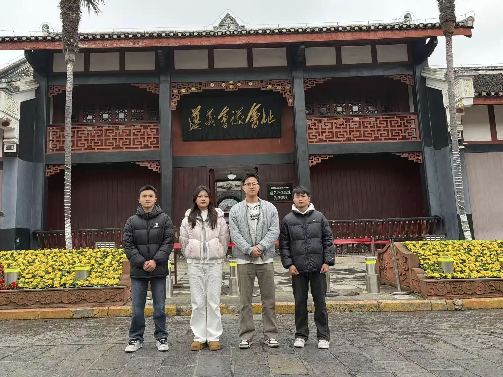 2026年2月4日,团学成员娄玉婷、黎士铭、何飞、曾坤前往贵州省遵义市遵义会议会址开展2026年寒假大学生“返家乡”暨“我和我的家乡”社会实践活动之“回望伟大转折,走好新时代长征路”红色文化教育活动。