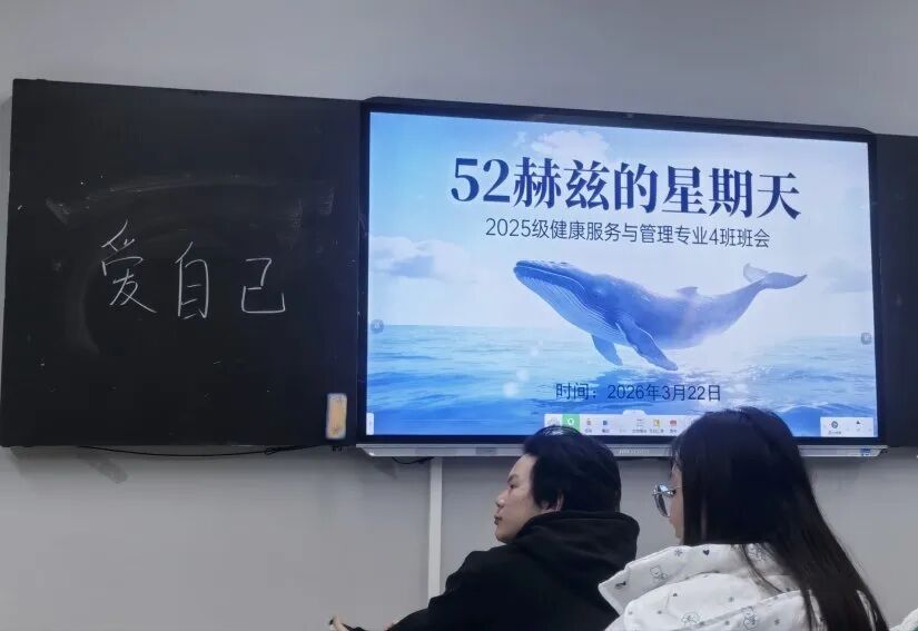 2026年3月22日晚7:00,体育与大健康学院2025级健康服务与管理4班在主教A主113-2教室举行了“52赫兹的星期天”主题班会的首场活动。本次班会以“爱自己:从看见开始”为主题,标志着为期14周的“成长双螺旋”育人项目正式启幕。