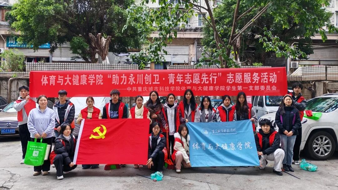 阳春三月,春风送暖,雷锋精神薪火相传。为助力永川区“全国文明城区”创建,以实际行动弘扬“奉献、友爱、互助、进步”的志愿精神,3月18日,重庆城市科技学院体育与大健康学院学生第一党支部联合星火一班,开展雷锋月志愿服务活动。支部党员、星火班学员化身“志愿红”,走进南大街街道小桥子社区,清理卫生死角、美化环境面貌,用青春行动为永川创卫添彩。
