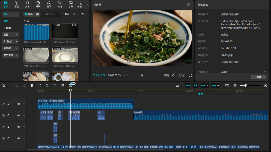 本次拍摄深入垫江老街与非遗工坊,全程实拍选豆浸泡、石磨推浆、滤浆熬煮、盐卤点制、成型起锅、蘸水调配全工序。镜头聚焦老匠人推磨、点卤的专注手法,捕捉豆浆沸腾、豆花凝絮的细腻瞬间,展现“一清二白三鲜嫩,四红五绿六麻辣”的独特品质。实践团队采用特写、慢镜头、同期声等手法,将传统手艺的温度与质感鲜活呈现,让非遗技艺可看、可感、可传播。