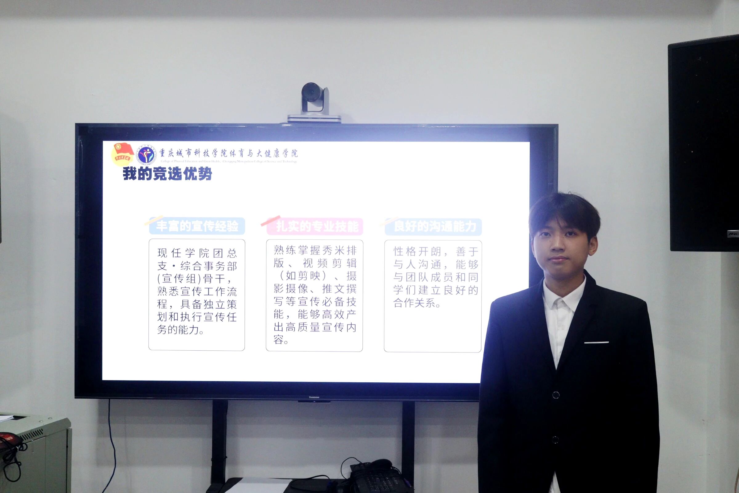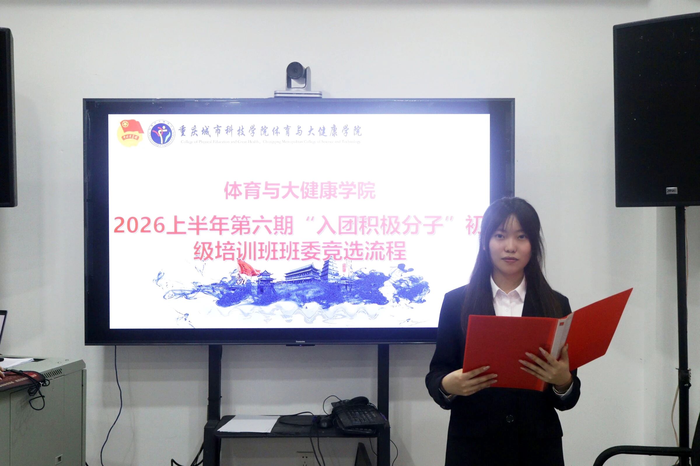 为进一步夯实入团积极分子队伍根基,发挥学生骨干的先锋引领作用,选拔出一批责任意识强、综合素质高的学生干部,为培训班高效有序开展筑牢组织保障。3月11日,体育与大健康学院于田径场会议室开展2026年上半年(第六期)入团积极分子培训班班委竞选。体育与大健康学院书记处·秘书长刘佳昕、主席团·主席李颖颖、娄玉婷担任本次竞选评委,团总支·组织部工作人员冉敏主持会议。