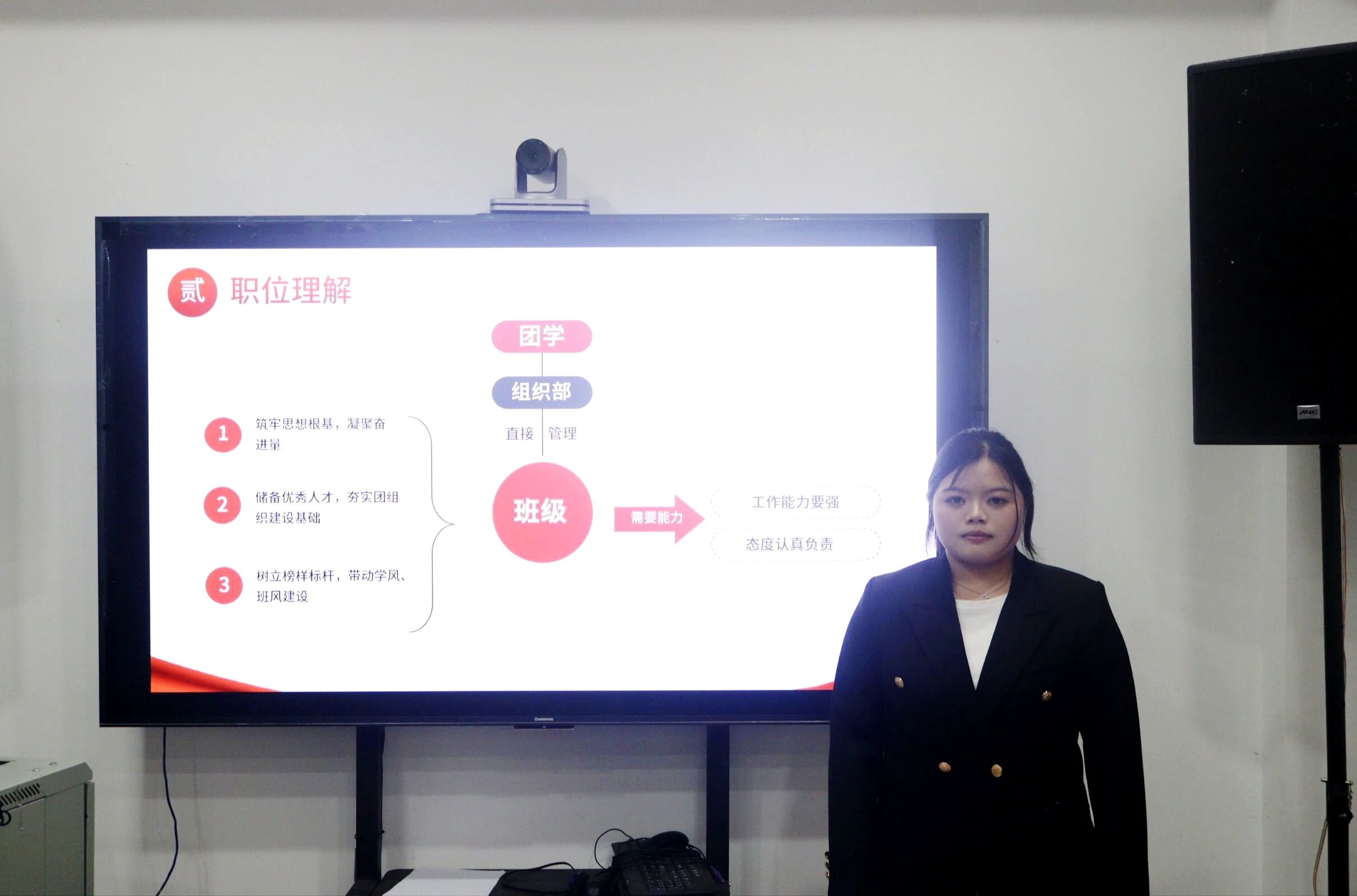 参与竞选的同学依次上台,围绕岗位认知、自身优势以及未来工作规划等方面进行精彩演讲。他们以饱满的热情和坚定的信念,承诺在任期内严守纪律、以身作则,以务实创新的态度高效完成各项任务。全体竞选者均展现出良好的心理素质,以简明流畅的表达完成了演讲,体现了新时代青年自信进取的精神风貌。