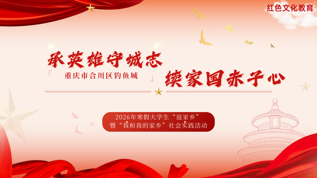 2026年2月9日,团学成员陈文俊、秦国瀚、邓春华、蒋华强、林佳怡前往重庆市合川区钓鱼城,开展2026年寒假大学生“返家乡”暨“我和我的家乡”社会实践活动之“承英雄守城志,续家国赤子心”家乡文化宣传活动。下面,让我们一同走进他们的实践故事。