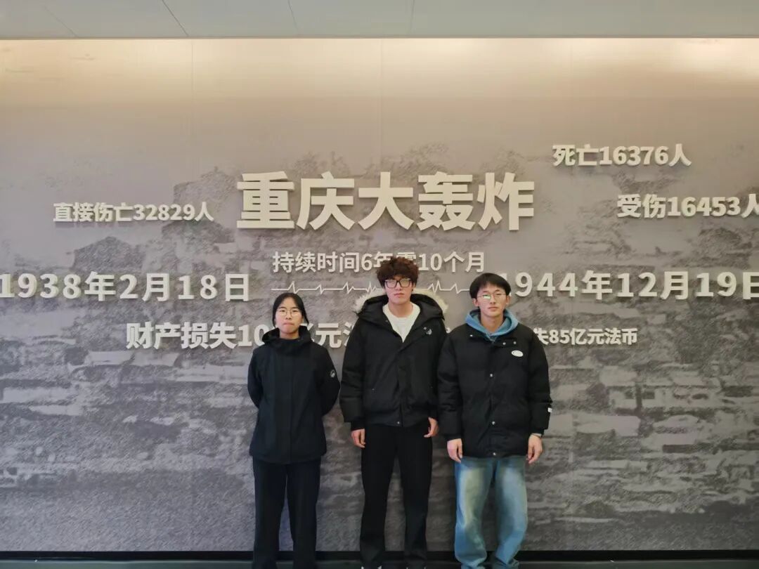 此次重庆大轰炸六五惨案史实展馆主题实践活动,让实践小队成员在沉浸式研学中感悟历史,在创新化传播中传承精神,真正实现了 “在实践中学习、在学习中成长”。作为新时代青年学子,唯有铭记历史、赓续精神、勇担使命,才能走好新时代的奋进之路,用青春之我、奋斗之我,为家乡重庆的发展,为中华民族伟大复兴的中国梦,贡献属于青年一代的青春力量!
