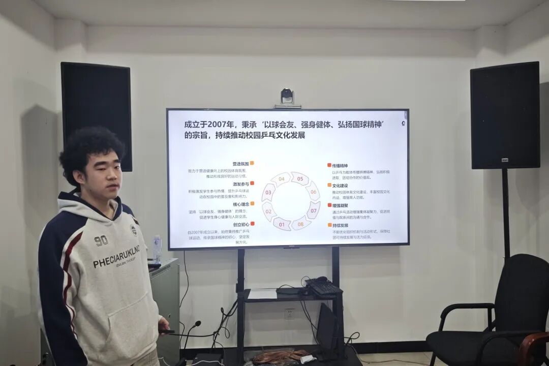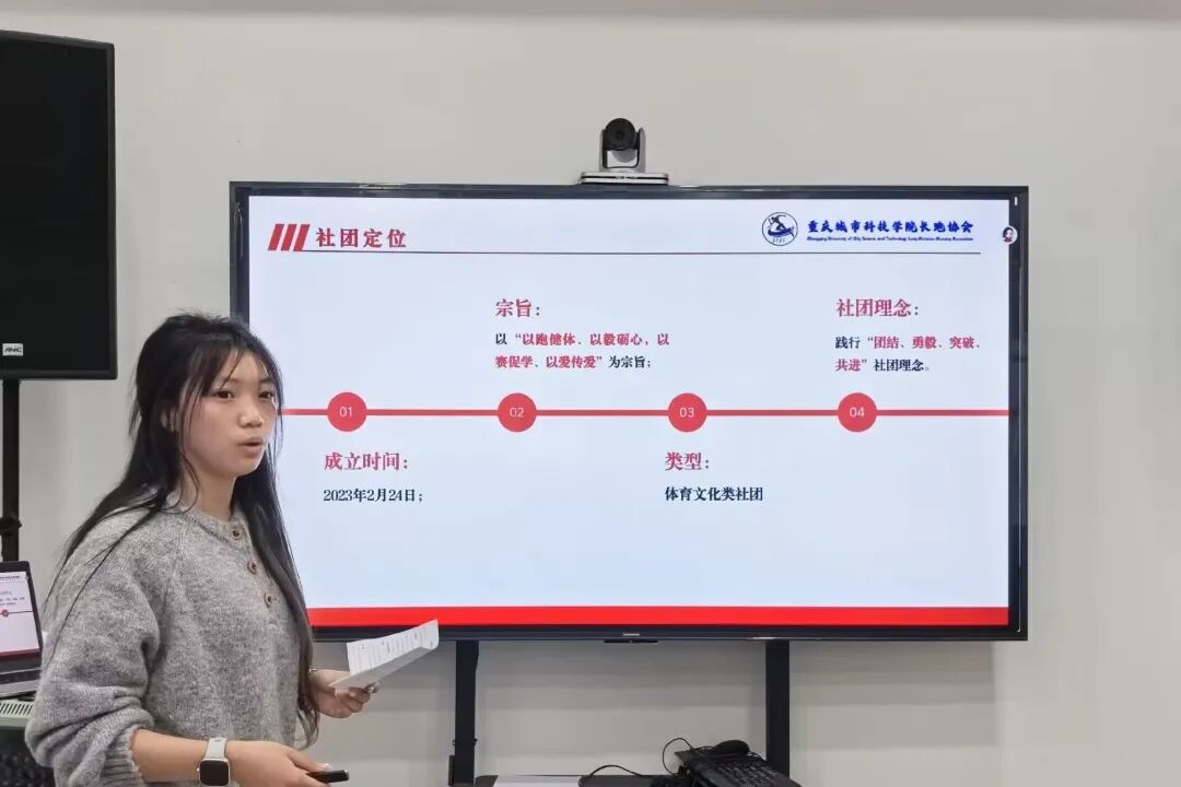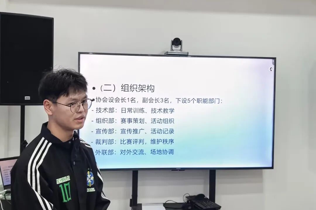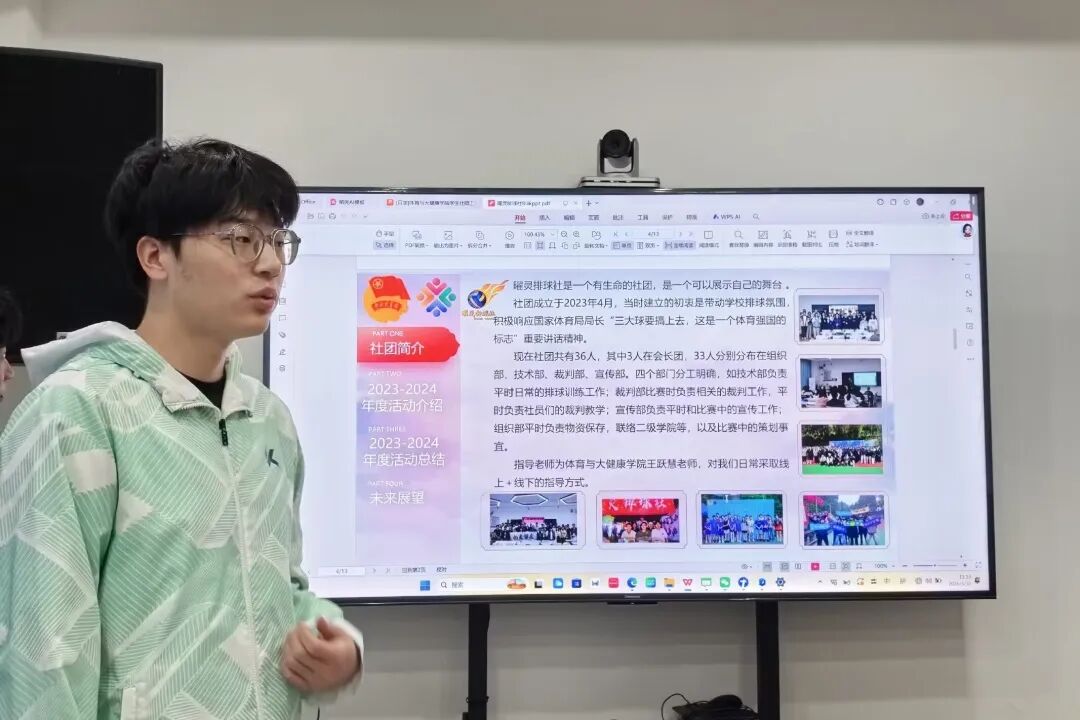 会议伊始,偶木花艺协会、长跑协会、网球协会、“追羽”羽毛球协会、足球协会、武术协会、曜灵排球社、康复理疗协会、体育舞蹈社、M-STORY街舞社、律动健身操舞协会、CQB篮球协会、散打社、爱乒球社等社团负责人分别汇报了过去两年的工作成果、特色品牌活动、成员培养机制以及新学年发展规划,分享了各自在社团管理、活动组织等方面的经验与思考。