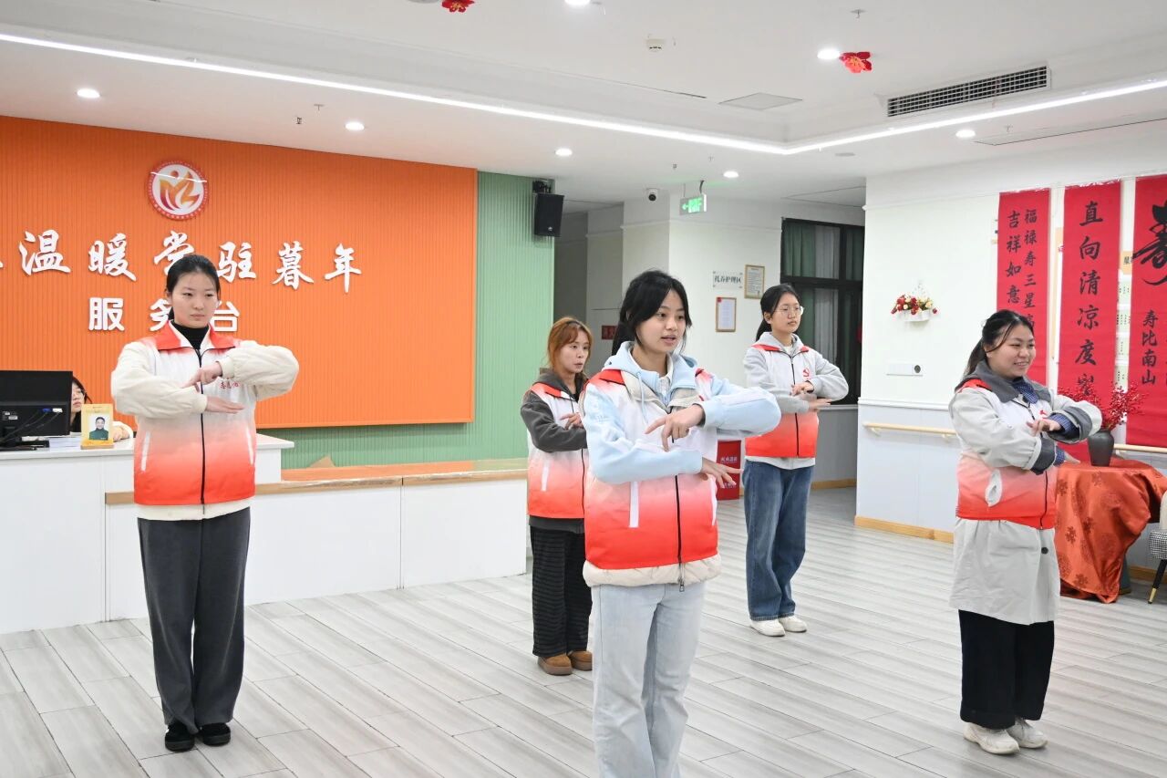 “看昨天的我们走远了,在命运广场中央等待……”当熟悉的旋律响起,志愿者们为老人们认真表演《明天你好》手势操。大家将每一个动作细心做好,老人们在观看时也随着节拍挥动双手,简单易学的手势动作,既锻炼了大家的手部灵活性与协调能力,更在律动中传递着积极向上的生活态度。