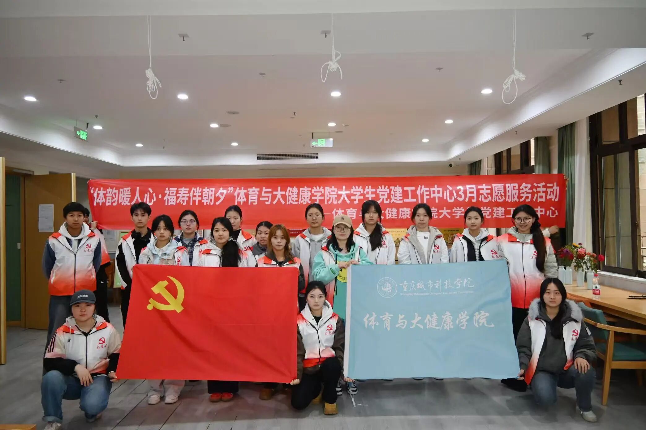 夕阳无限好,人间重晚晴。本次“体韵暖人心·福寿伴朝夕”志愿服务活动,是体育与大健康学院大学生党建工作中心践行“党建+专业+服务”育人模式的生动实践。志愿者们以体育专长服务社会,以青春热情温暖夕阳,在奉献中锤炼党性修养,在实践中厚植为民情怀。未来,体育与大健康学院将继续发挥专业优势,深化志愿服务品牌建设,让党旗在志愿服务一线高高飘扬,让青春在奉献担当中绽放绚丽之花!