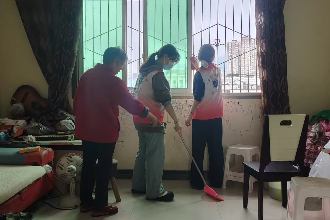 经过近三个小时的共同努力,原本蒙尘的窗户变得洁净透亮,斑驳的墙面恢复了整洁原貌,杂乱的屋内环境焕然一新。社区工作人员与周边居民纷纷为这群年轻志愿者的细致服务与真诚付出点赞。