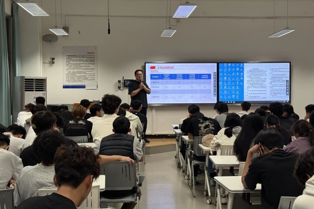 在学业成绩分析环节,王老师结合社体、运训、健管三个专业各班成绩数据,按专业排名前10%、10%-30%、30%-50%、50%及以后四个层次,逐一通报各班学业情况,精准指出当前存在的问题与不足,督促成绩靠后的同学正视差距、查漏补缺,引导全体同学端正学习态度、改进学习方法,严格遵守课堂“三带”要求,前排就座,自觉维护优良学风。