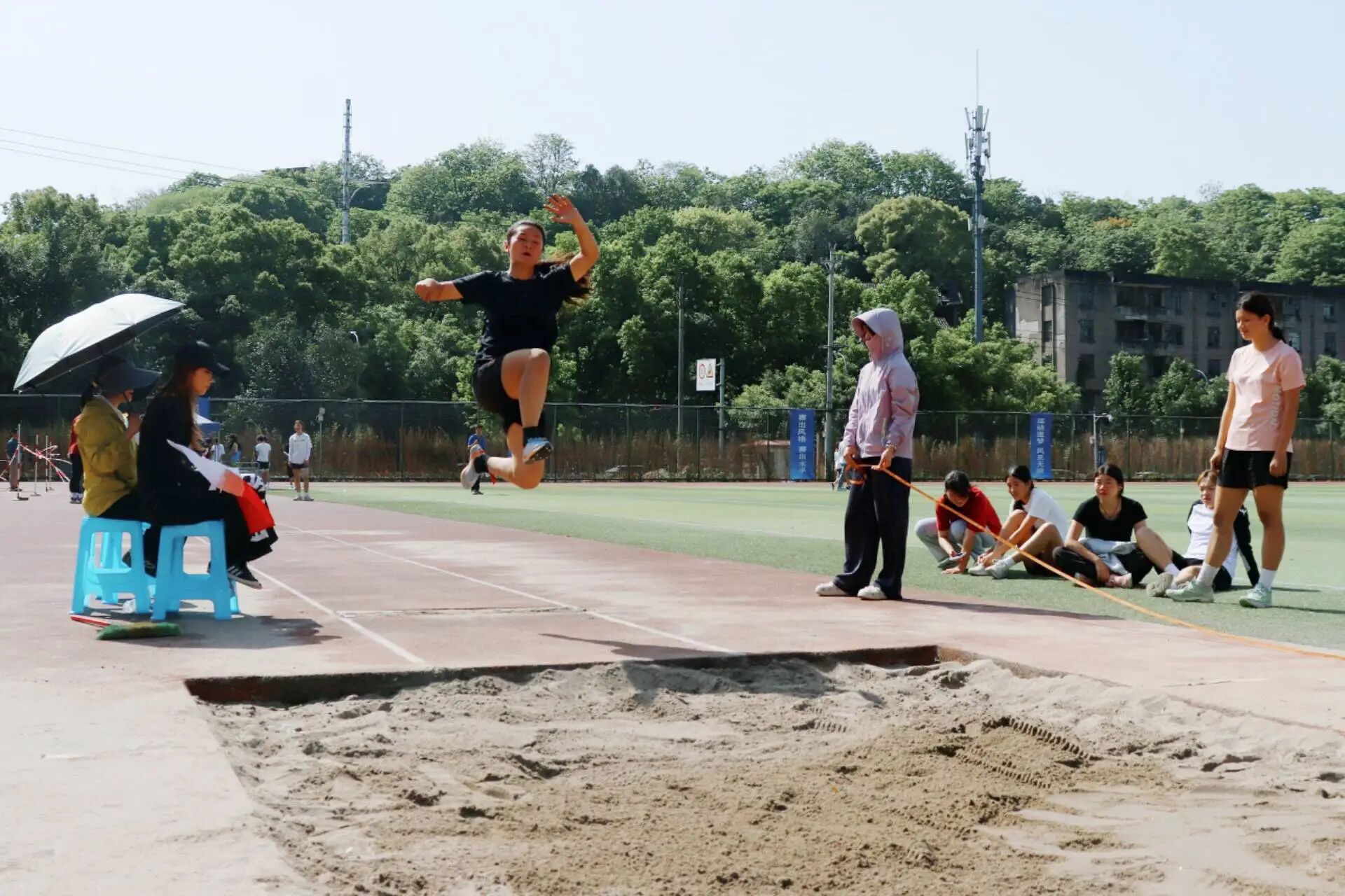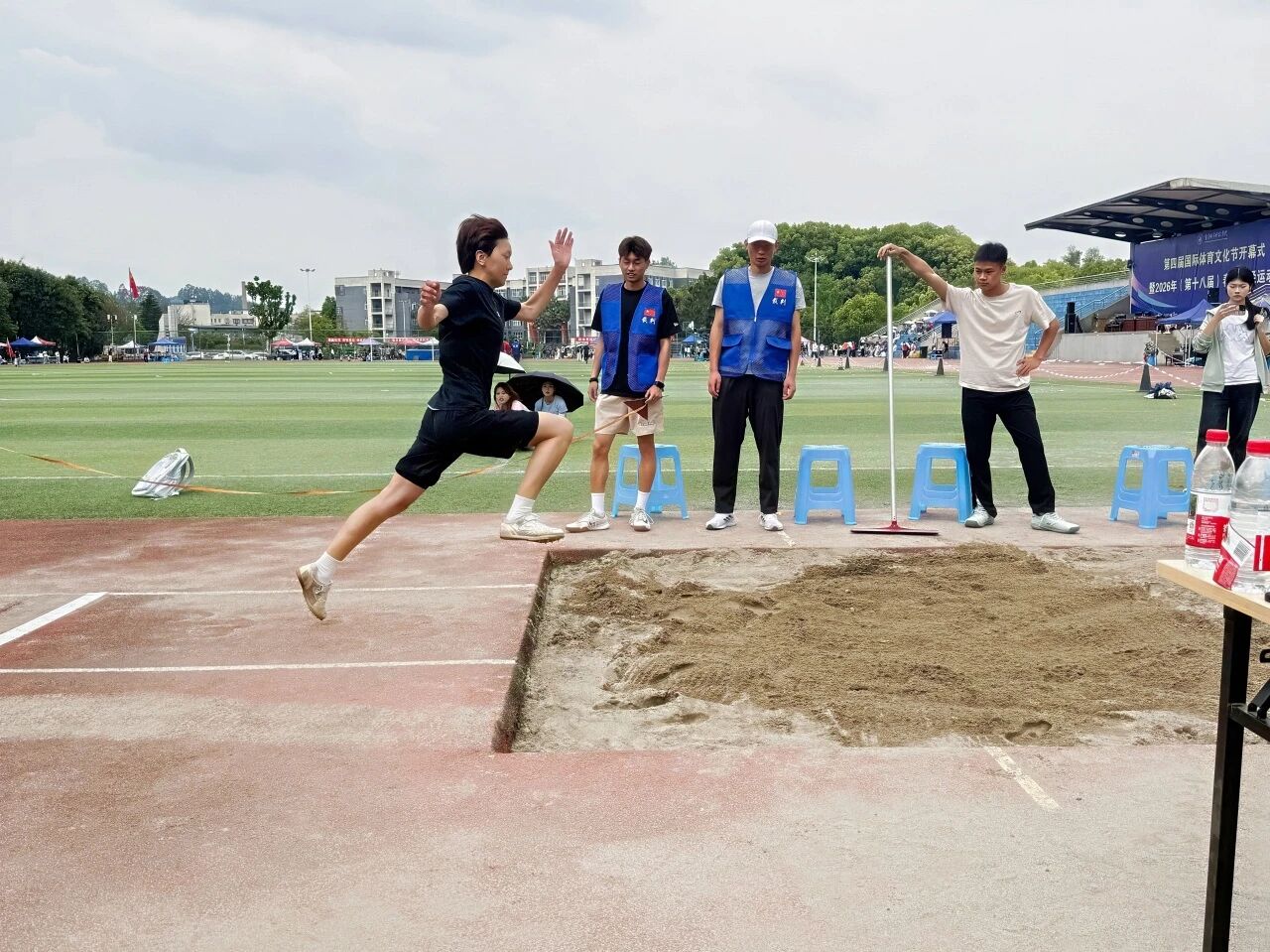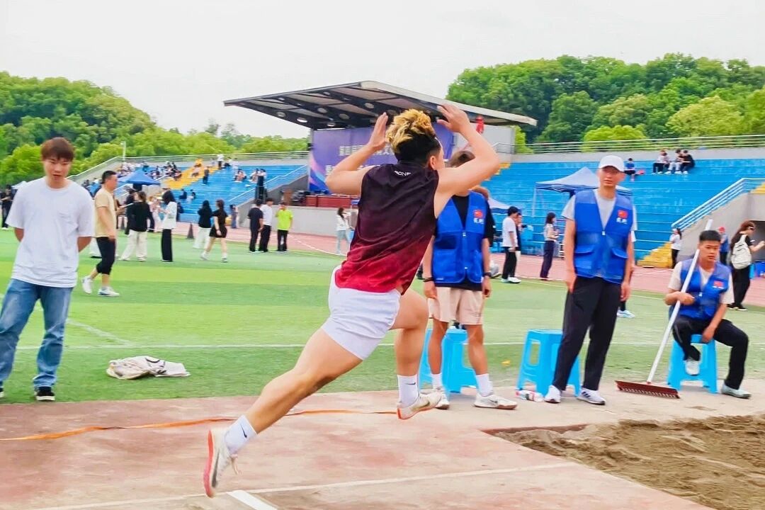 跳远赛场,选手节奏明快、动作连贯,女子选手更是稳定发挥,突破自我展现不俗实力。