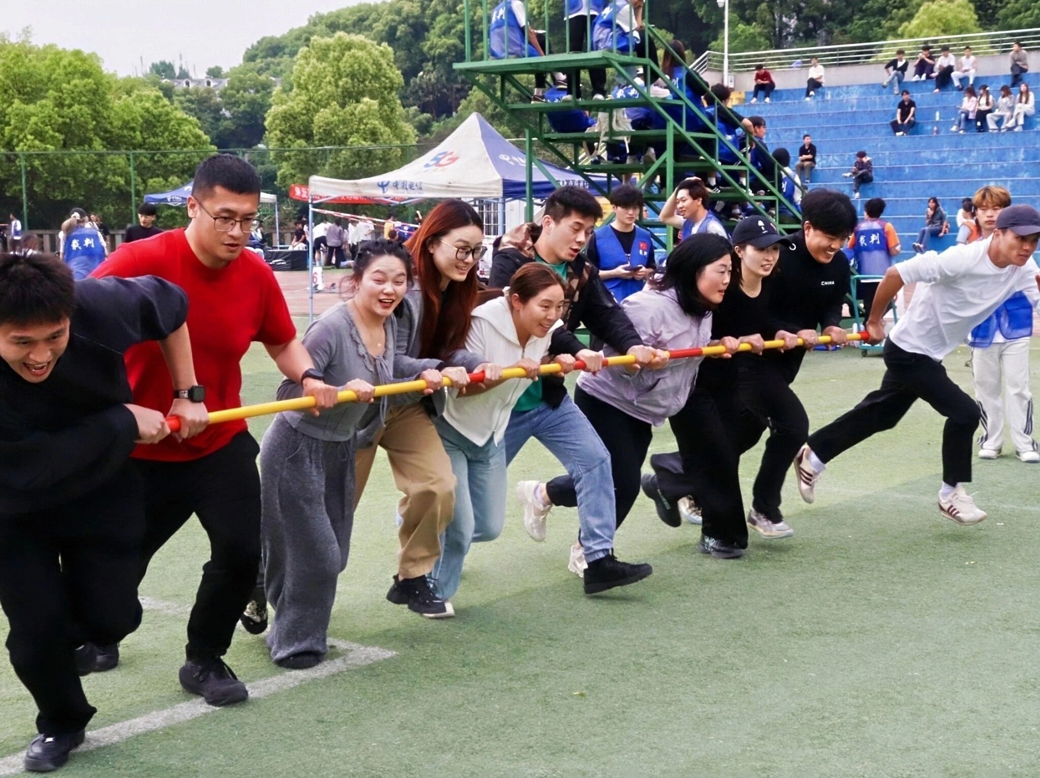 赛场之上,教职工们卸下平日工作的忙碌,以运动赴欢乐之约,用协作凝团队之心,别样的竞技现场温情满满、活力四射。校园5km欢乐跑活力开跑,校领导带头迈步前行,全体教职工紧随其后,迎着清风并肩奔跑,沿途相互鼓劲、坚定前行,以昂扬姿态展现积极向上的精神风貌。