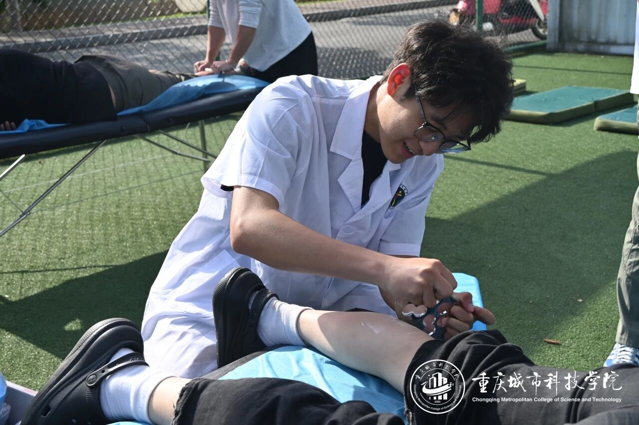 赛场一侧,运动康复专业的学生组建志愿康复服务站,用专业技能为赛后学子提供贴心保障。针对运动后肌肉疲劳、酸胀紧绷等不适,同学们熟练运用按摩、推拿、针灸等康复技法,精准放松肌群、缓解运动疲劳,以专业所学为参赛健儿保驾护航。贴心服务与娴熟技艺,彰显康复专业实力,传递青春温暖,成为赛场之外一道温情满满的风景线。