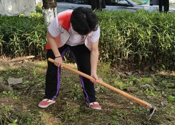 活动现场,志愿者化身“绿色使者”迅速投入忙碌:植树区域里挥锹挖坑、扶正树苗、填土压实、提水浇灌,每步骤一丝不苟;除草现场俯身清理杂草、拔除枯枝,呵护蓝花楹幼苗。暖阳下,“志愿红”与“草木绿”交相辉映,成为校园动人风景线。