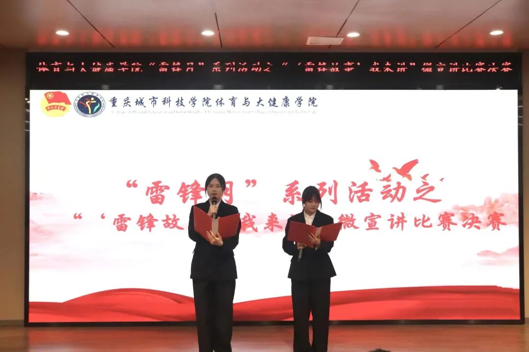 2026年3月25日,重庆城市科技学院体育与大健康学院“雷锋月”系列活动之“‘雷锋故事’我来讲”微宣讲决赛,在城科第二报告厅圆满举办。学院多位领导老师莅临担任评委,万佳、刘祥蜀主持活动,以青春之声传承雷锋精神。