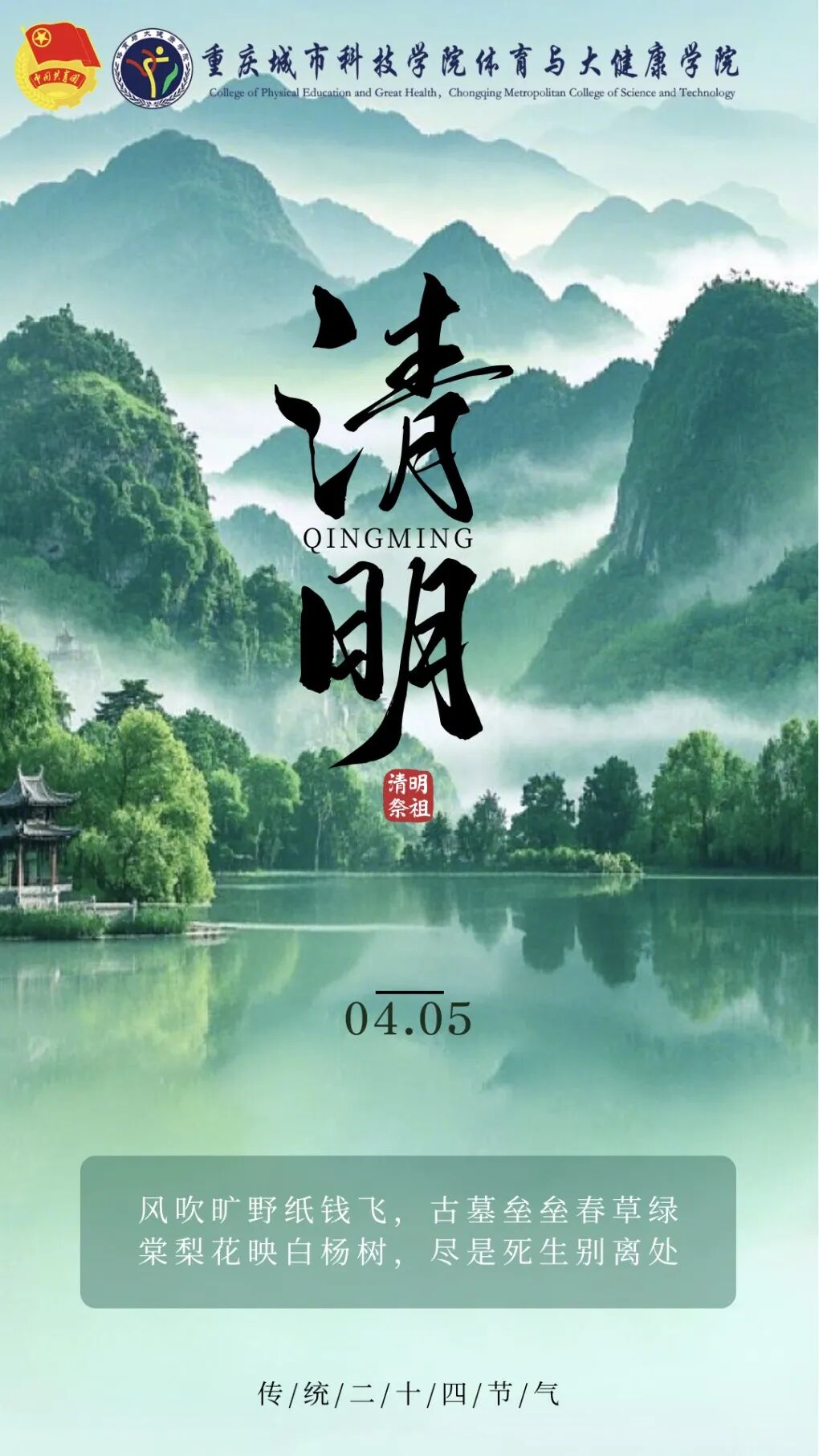 亲爱的同学们,无论你是返乡祭祖、留校休整,还是踏青出游,学院始终牵挂着每一位同学的安全与健康。请收好这份专属提示,让我们共同度过一个平安、文明的清明假期~