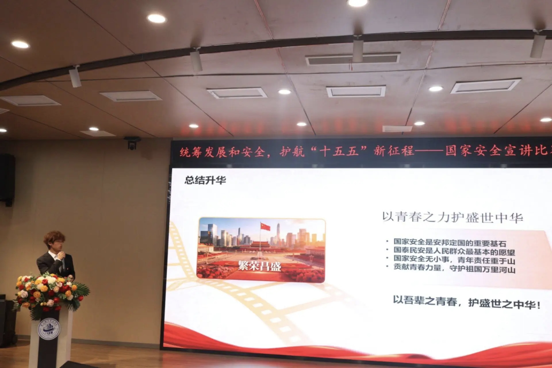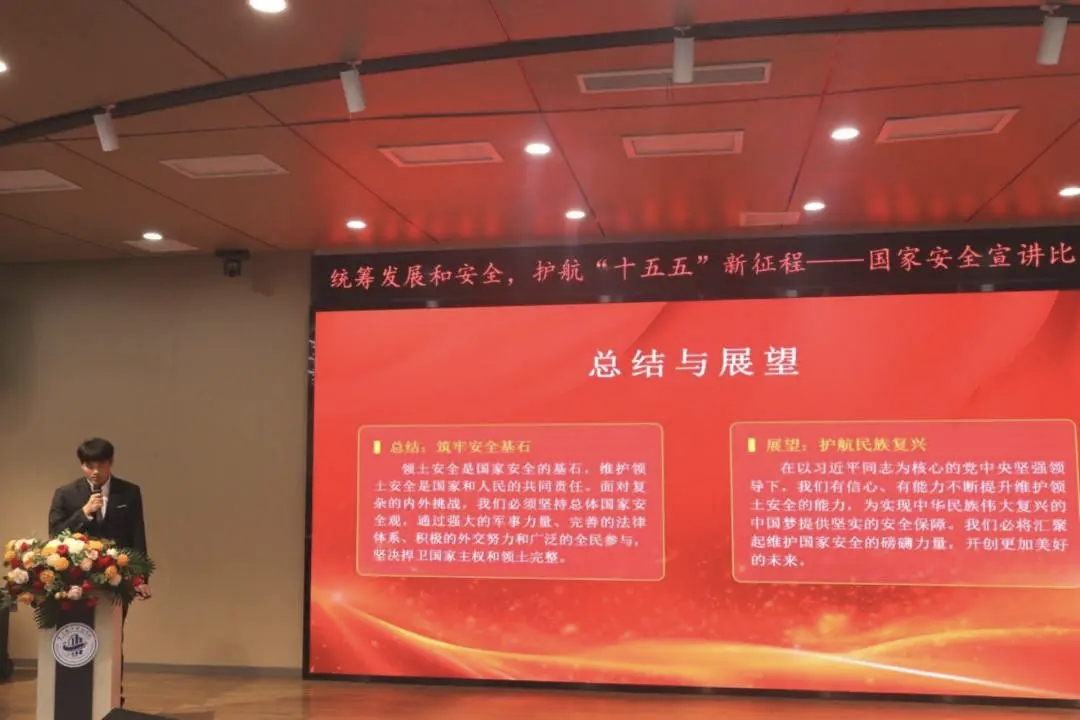 参赛选手们紧扣活动主题,结合自身学习与实践经历,以鲜活的案例、清晰的逻辑和饱满的热情,对国家安全进行了全方位解读。他们将理论知识与现实担当深度融合,以青年视角生动展现了新时代大学生维护国家安全的责任与担当,为现场观众呈现了一场思想深邃、富有感染力的精神盛宴。