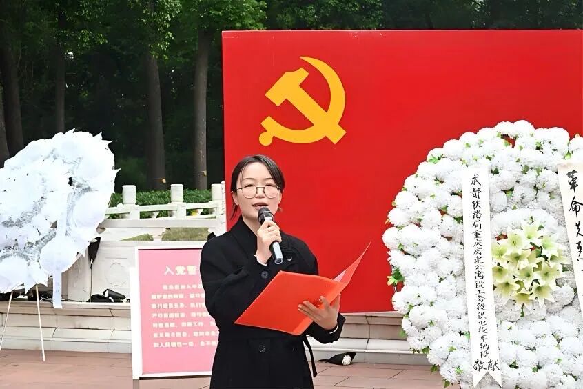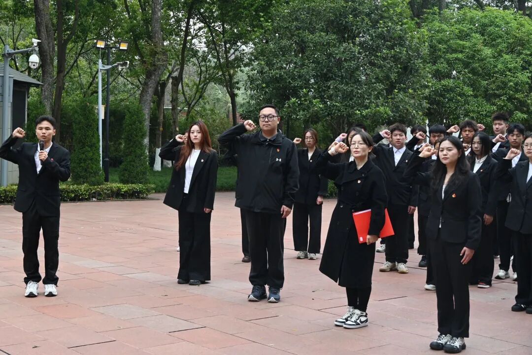 全体师生党员高举右拳,庄严重温入党誓词。铮铮誓言回荡在陵园之中,字字句句饱含赤诚,彰显着青年一代传承红色血脉、勇担时代使命的坚定初心。