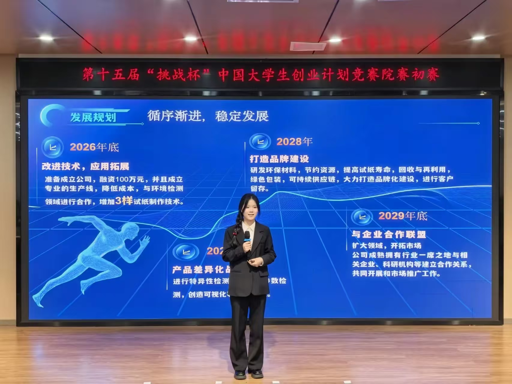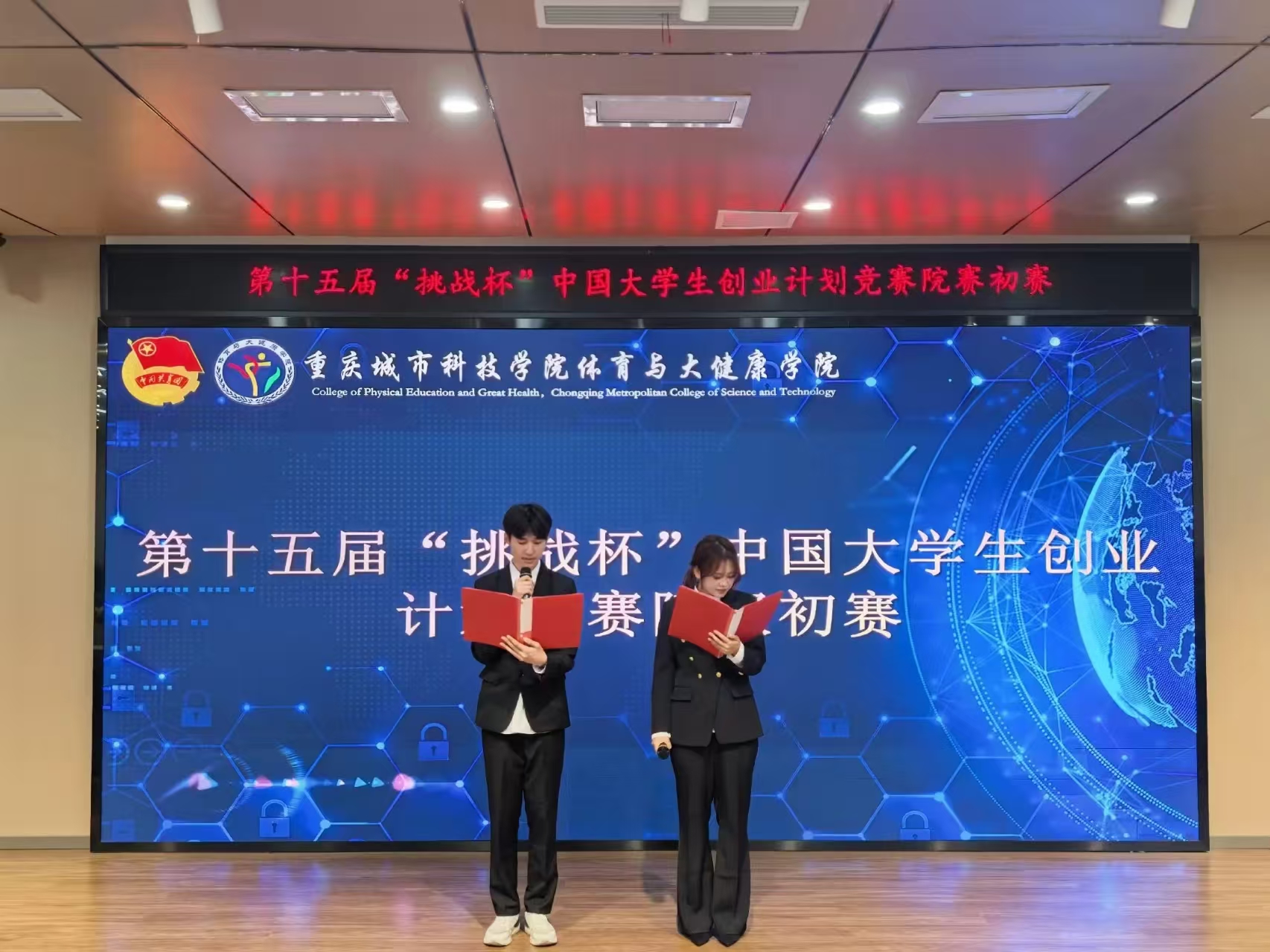 为深入学习贯彻习近平新时代中国特色社会主义思想,全面贯彻党二十届四中全会精神,落实“十五五”战略部署,聚焦青年创新创业能力培育,服务科技创新和产业创新深度融合,促进青年高质量充分就业,一体推进教育科技人才发展,持续培育大学生科技创新项目和储备创新人才,培养学生创新精神和实践能力,带动高校学生课外学术科技活动蓬勃开展,助力加快打造西部人才中心和创新高地,推动具有全国影响力的科技创新中心建设实现新突破。4月9日,体育与大健康学院第十五届“挑战杯”中国大学生创业计划竞赛院级初赛在第二学术报告厅圆满收官。体育与大健康学院党总支组织委员、大学生党建工作中心指导老师张丹、团总支书记王胜蓝、学生第一党支部书记王静、就业创业板块负责人鲁馨刚、学生第一党支部副书记吴小蓉担任此次初赛的评委,团学工作人员王昌红,常墅担任此次比赛的主持人。
