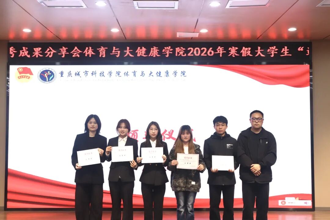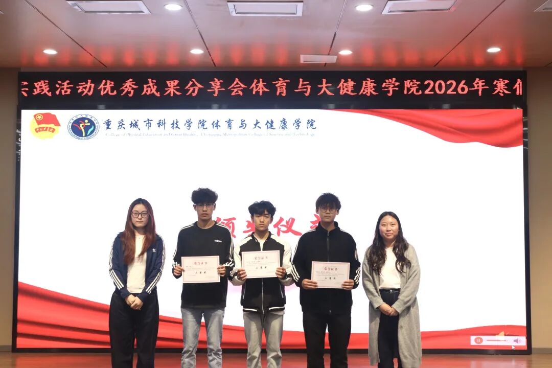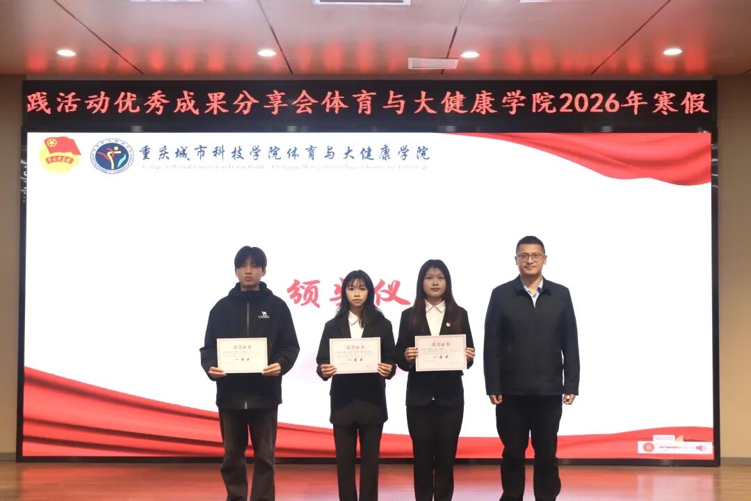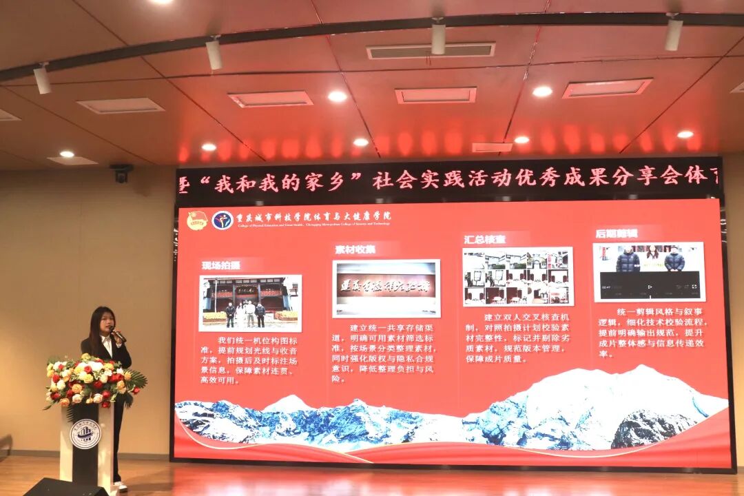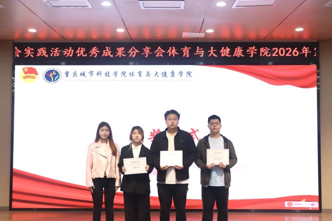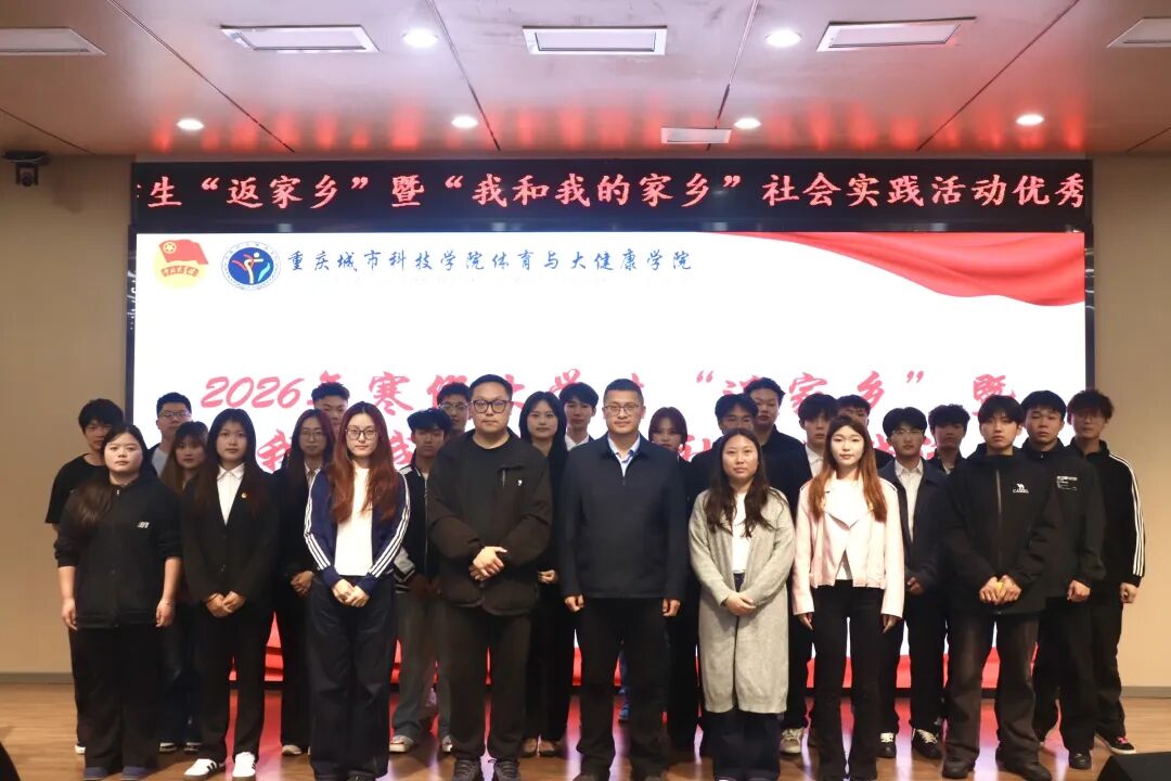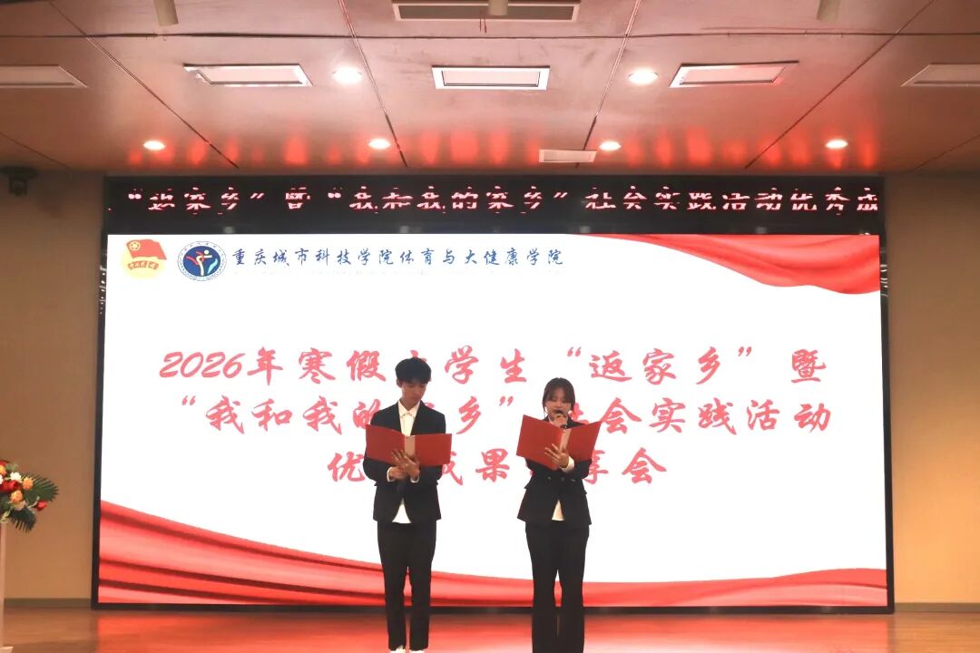为深入学习贯彻党的二十届四中全会精神,全面落实习近平总书记关于激励新时代青年在中国式现代化建设中挺膺担当的重要要求,2026年4月3日,体育与大健康学院于第二学术报告厅举办2026年寒假“返家乡”暨“我和我的家乡”社会实践优秀成果分享会。体育与大健康学院党总支副书记李之琦、团总支书记王胜蓝、学生第一党支部书记王静、学生第二党支部书记周君婷、团学指导老师蒲鸿雁及学生代表共同参会。本次会议由团学成员王昌红、常墅主持。