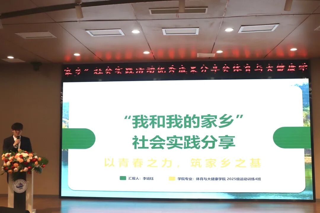 立足新时代浪潮,三名体院青年学子以亲身实践踏遍家乡热土,用赤诚初心描绘乡村振兴的青春画卷。娄玉婷、李靖钰、蔡宇玲三位同学依次登台,结合自身经历分享了在“我和我的家乡”实践活动中的感悟与收获。从文化传承推广到助力乡村振兴,每一次实践探索都彰显着青春智慧,每一份调研报告都饱含着对故土的深切眷恋。