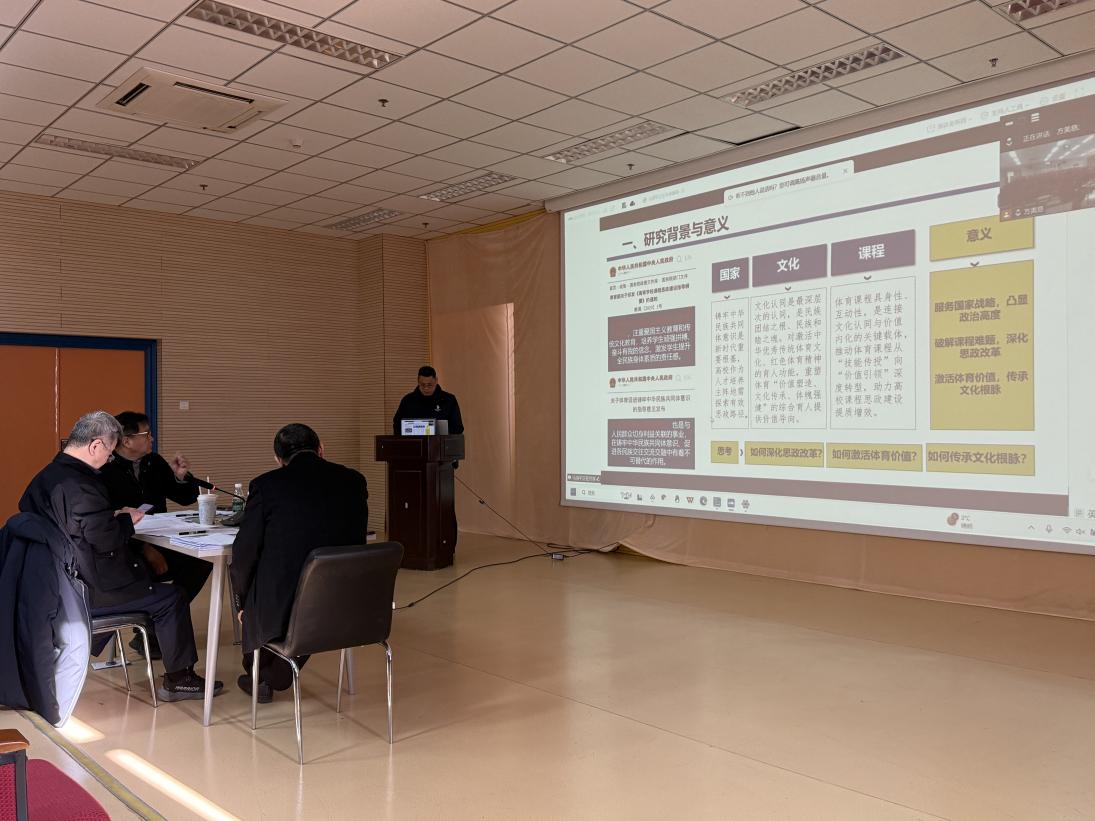 答辩过程中,课题负责人立足文化认同理论与具身认知理论,系统阐述了课题的研究框架,该课题聚焦高校体育课程思政建设关键领域,旨在探索通过体育教学具身化实践培育大学生中华民族共同体意识的有效路径,对于推动体育教育与思政教育深度融合、强化高校立德树人根本任务落实具有重要的理论与实践价值。汇报结束后,专家组对课题的选题价值与研究思路给予充分肯定,并结合研究重点、方法优化、成果转化等方面提出了针对性的指导建议。