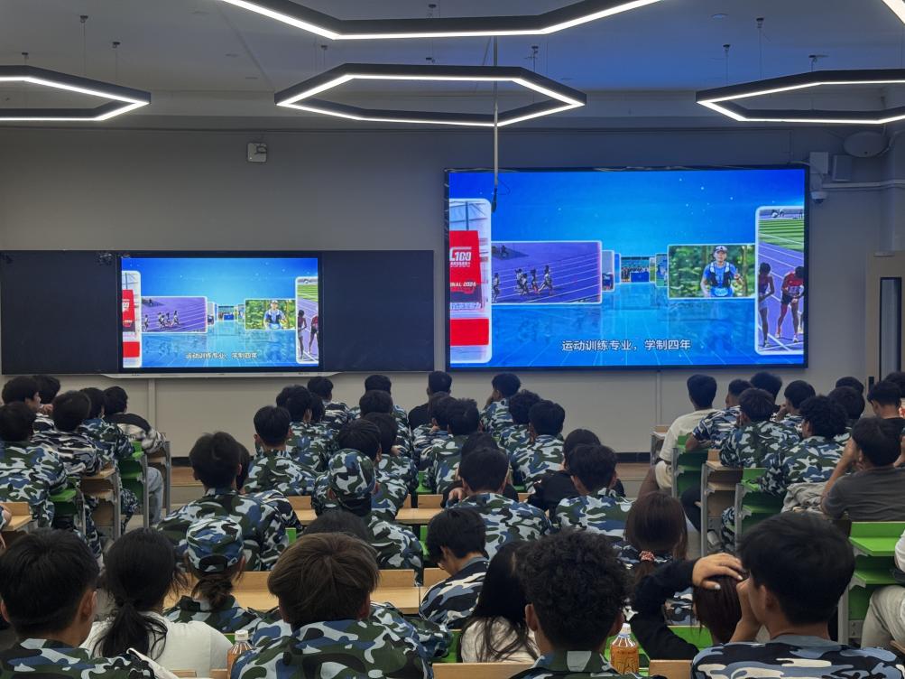 随后,马得平副主任简要介绍体育与大健康学院的发展历程、教学资源配置及育人理念体系,让新生对学院的办学实力与培养方向有了初步且清晰的认知。为进一步点燃新生的专业热情,会议现场播放了运动训练专业宣传视频——画面中,运动员们以汗水浇灌梦想、用坚持突破极限,从日常训练的精益求精到赛事领奖台的荣耀绽放,生动诠释了运动训练专业的独特魅力与价值内核,在场新生纷纷表示深受触动,对未来专业学习充满期待。